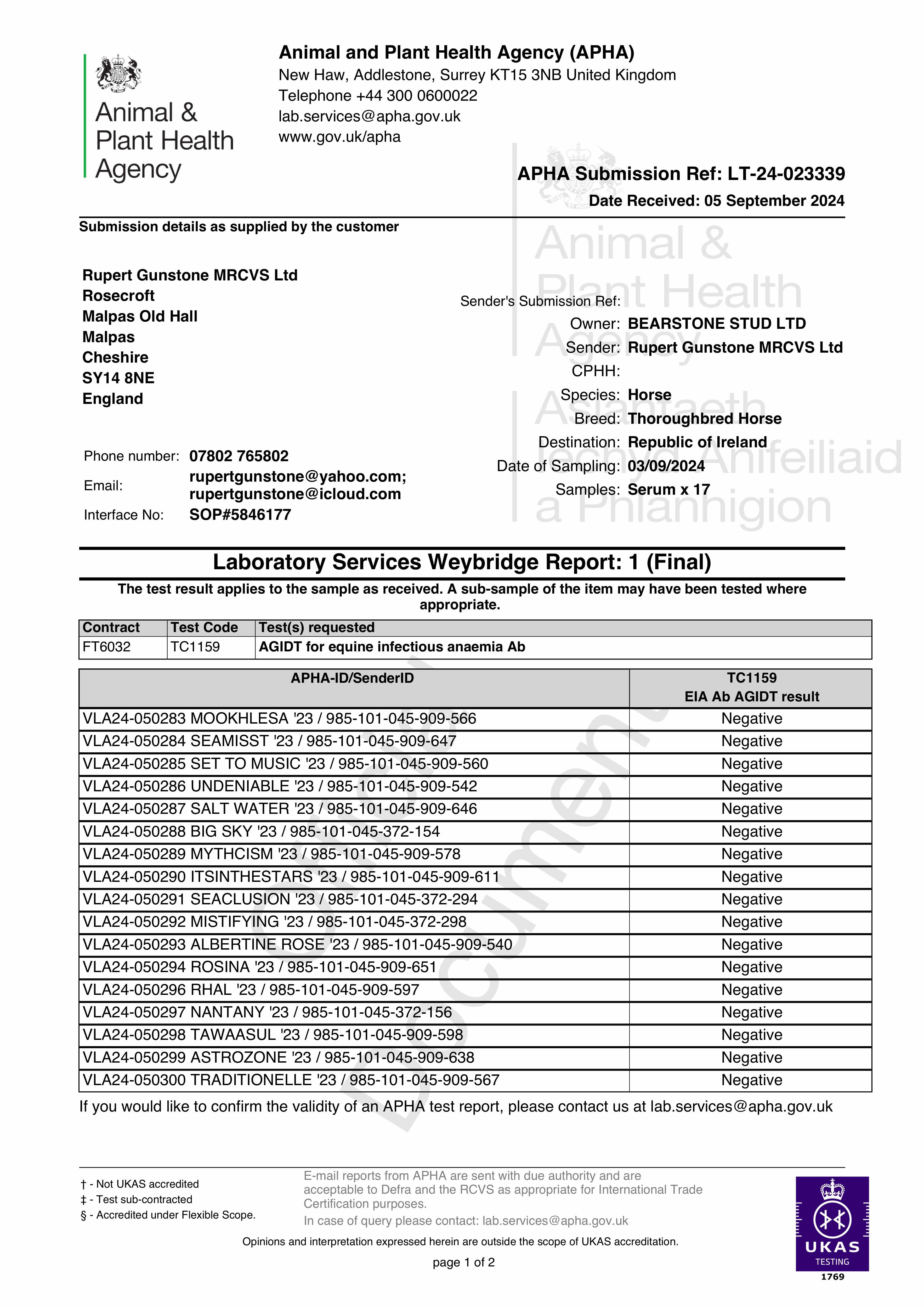 Tuesday 8 October:  Under 2nd dam, Zaraba (IRE), dam of: SAMOA (FR), 1 race at 3 years, 2024 in France and £10,716.