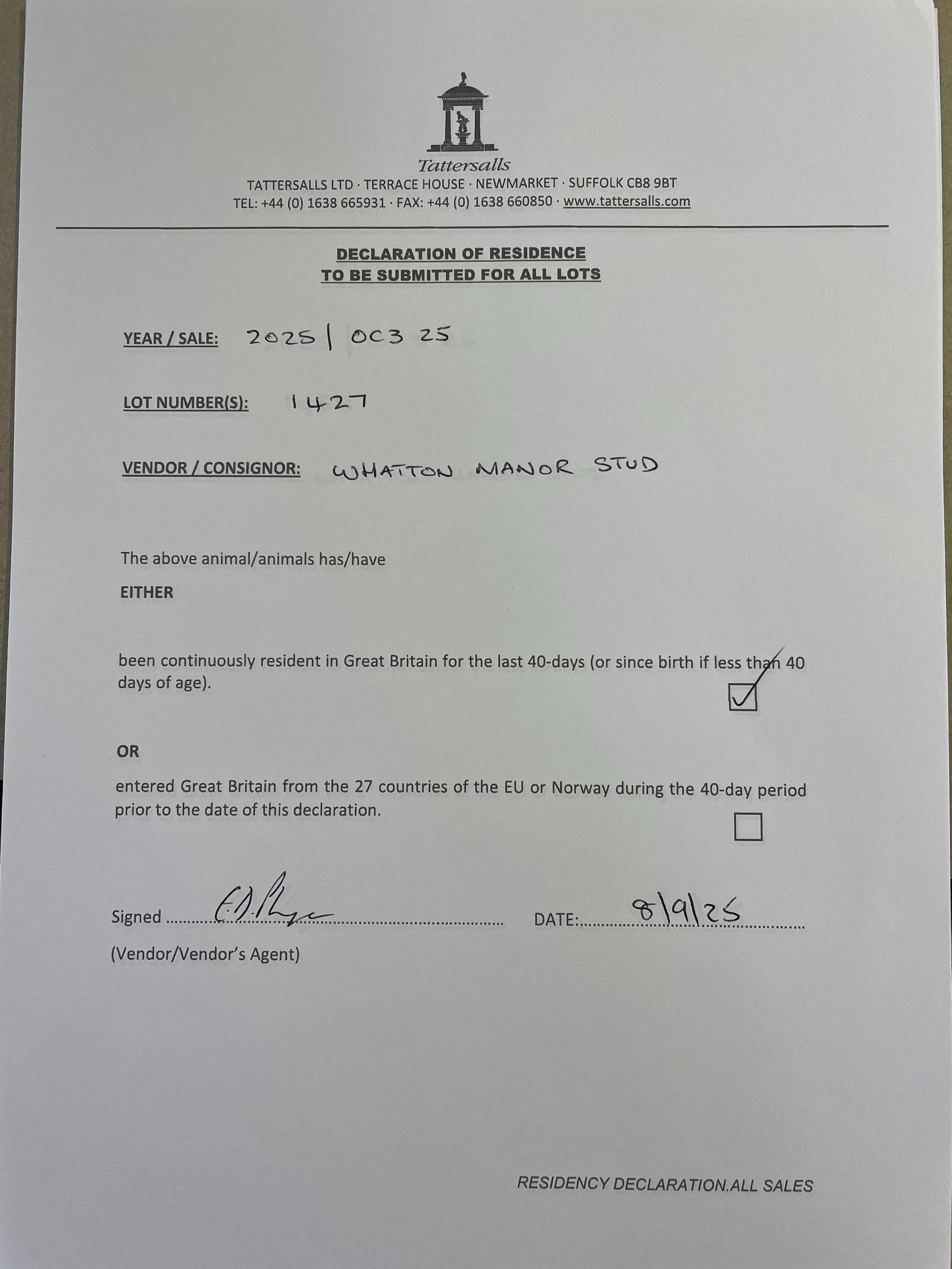 December Foal Sale 2025 lot 360 F. by Space Blues (IRE) 2025, Whatton Manor Stud=>Vendor 1,000 gns