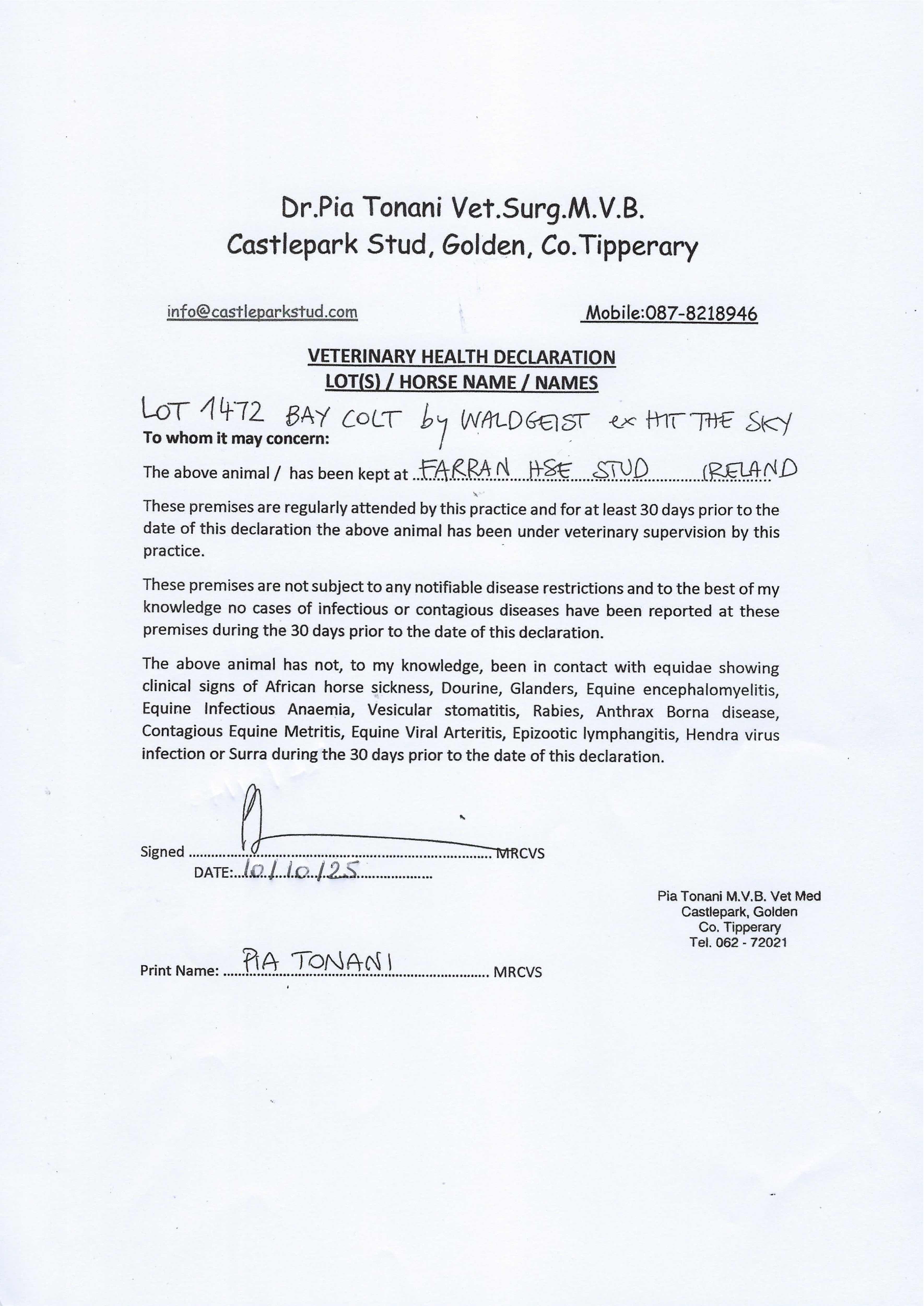 Consignor: Ballylinch Stud, Ireland