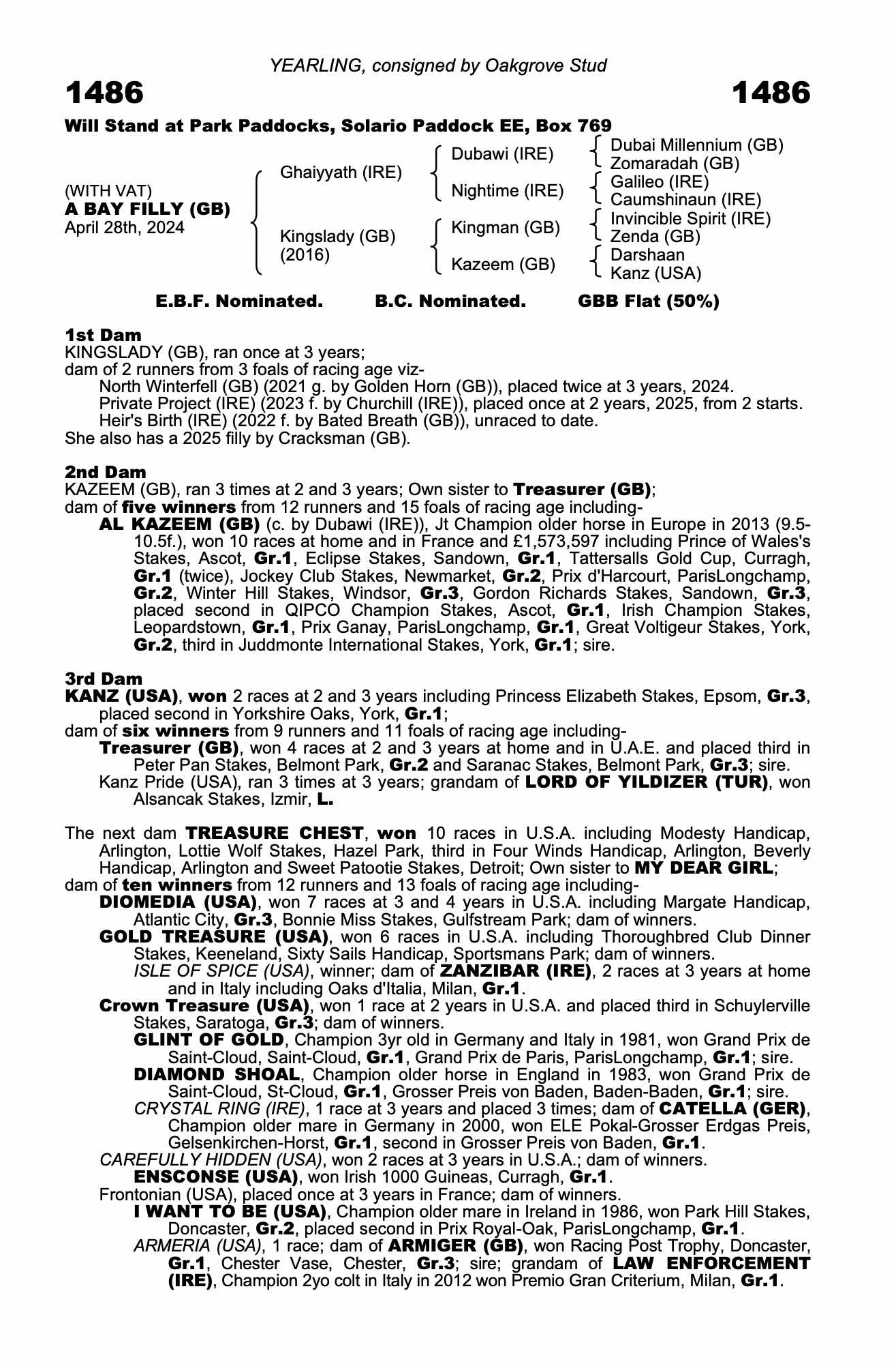 Consignor: Oakgrove Stud