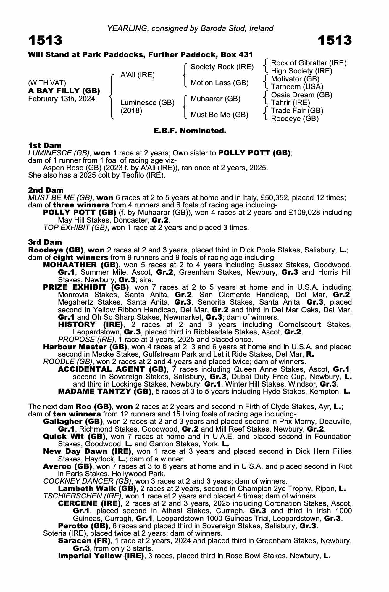 Somerville Yearling Sale 2024 lot 253 F. 2023, Baroda Stud, Ireland=>Vendor 10,000 gns