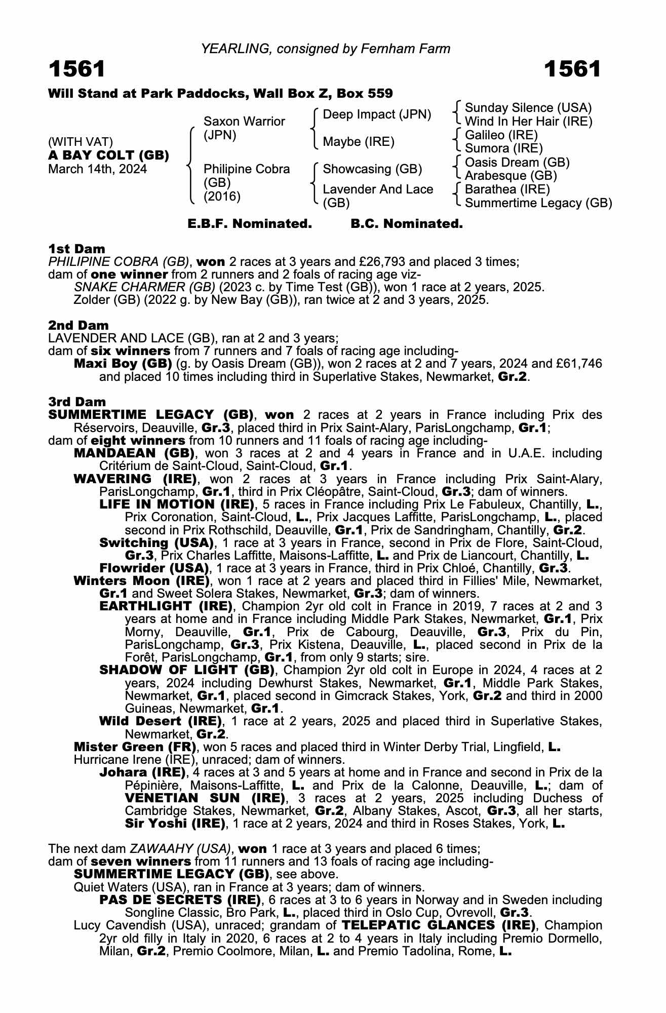 Half brother: SNAKE CHARMER (GB) (2023 c. by Time Test (GB)), placed once.