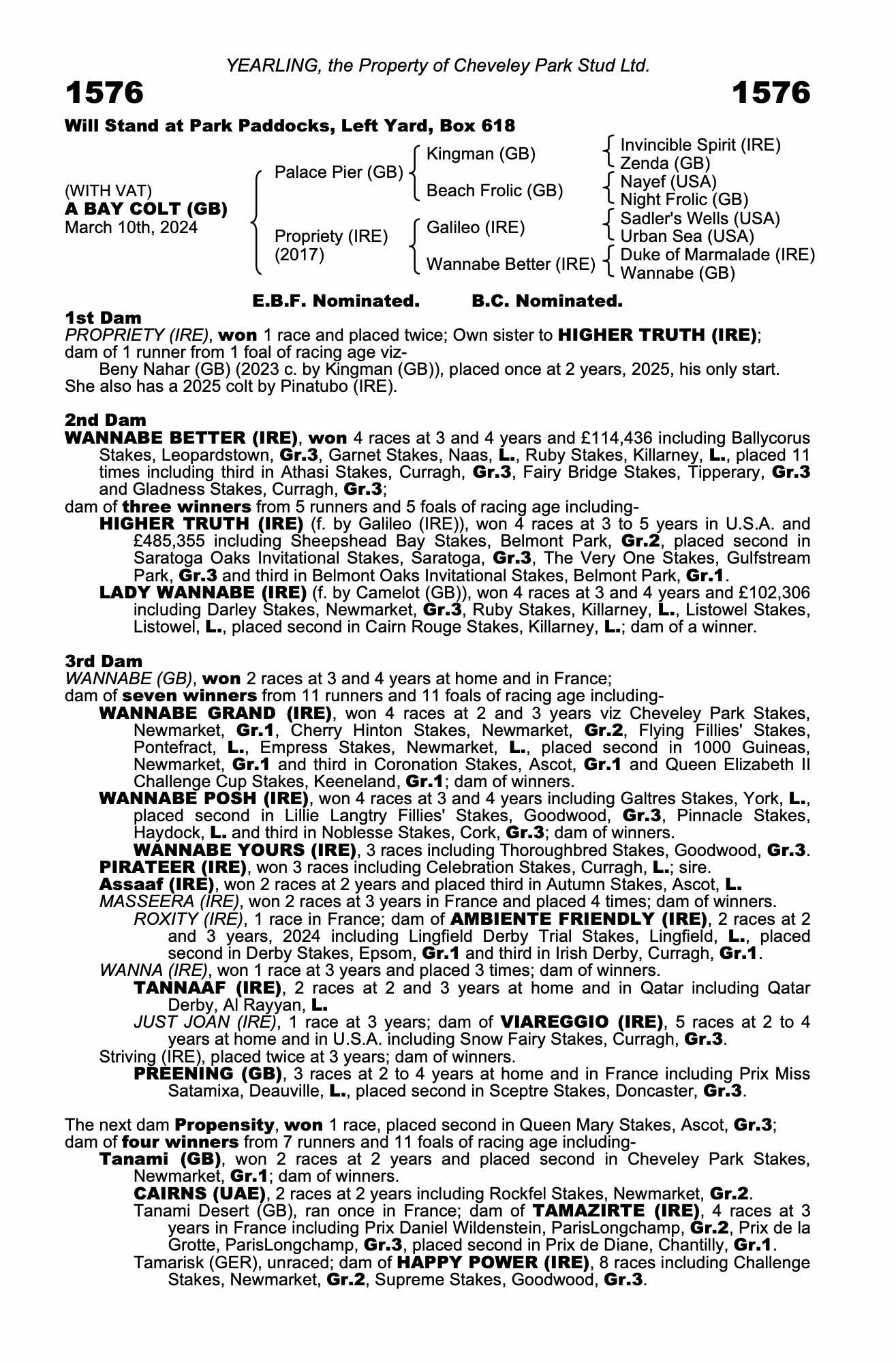 Autumn Horses In Training Sale 2025 lot 589 Beny Nahar (GB) (C. by Kingman (GB)), Kingsley Park=>Vladimir Vukojevic 18,000 gns