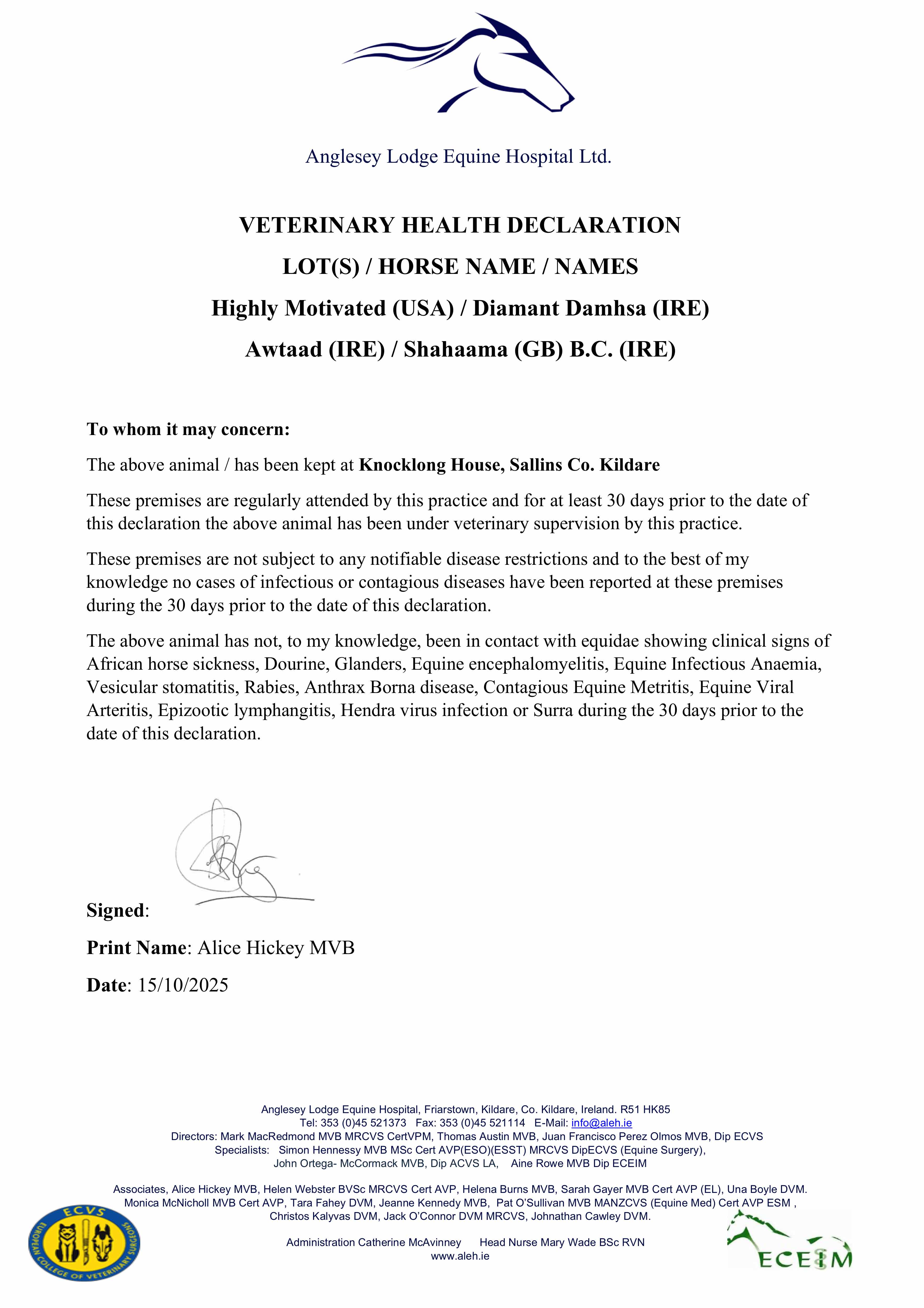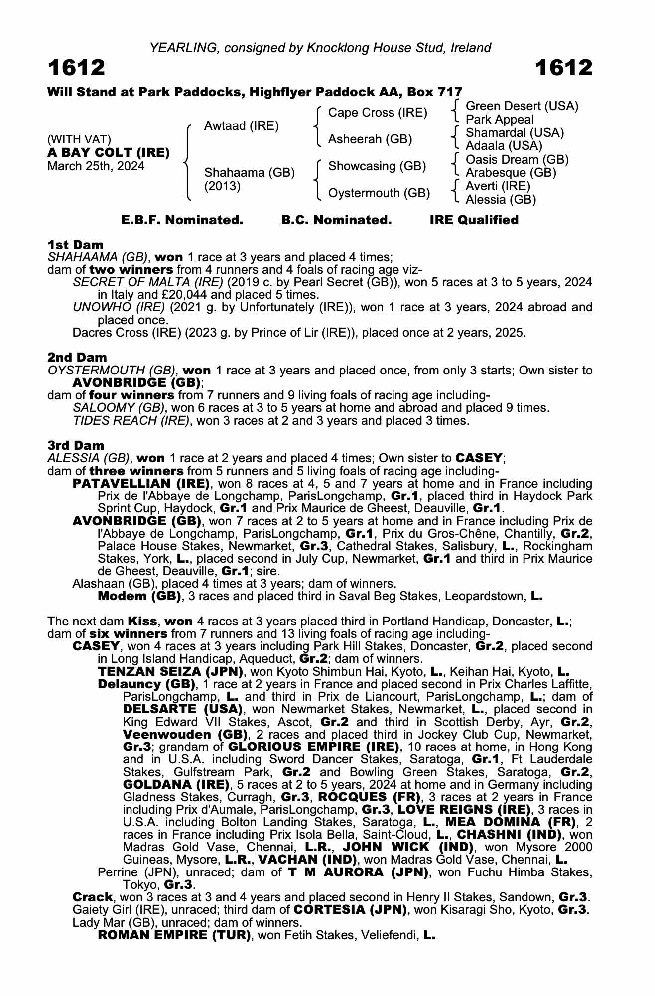 Consignor: Knocklong House Stud, Ireland