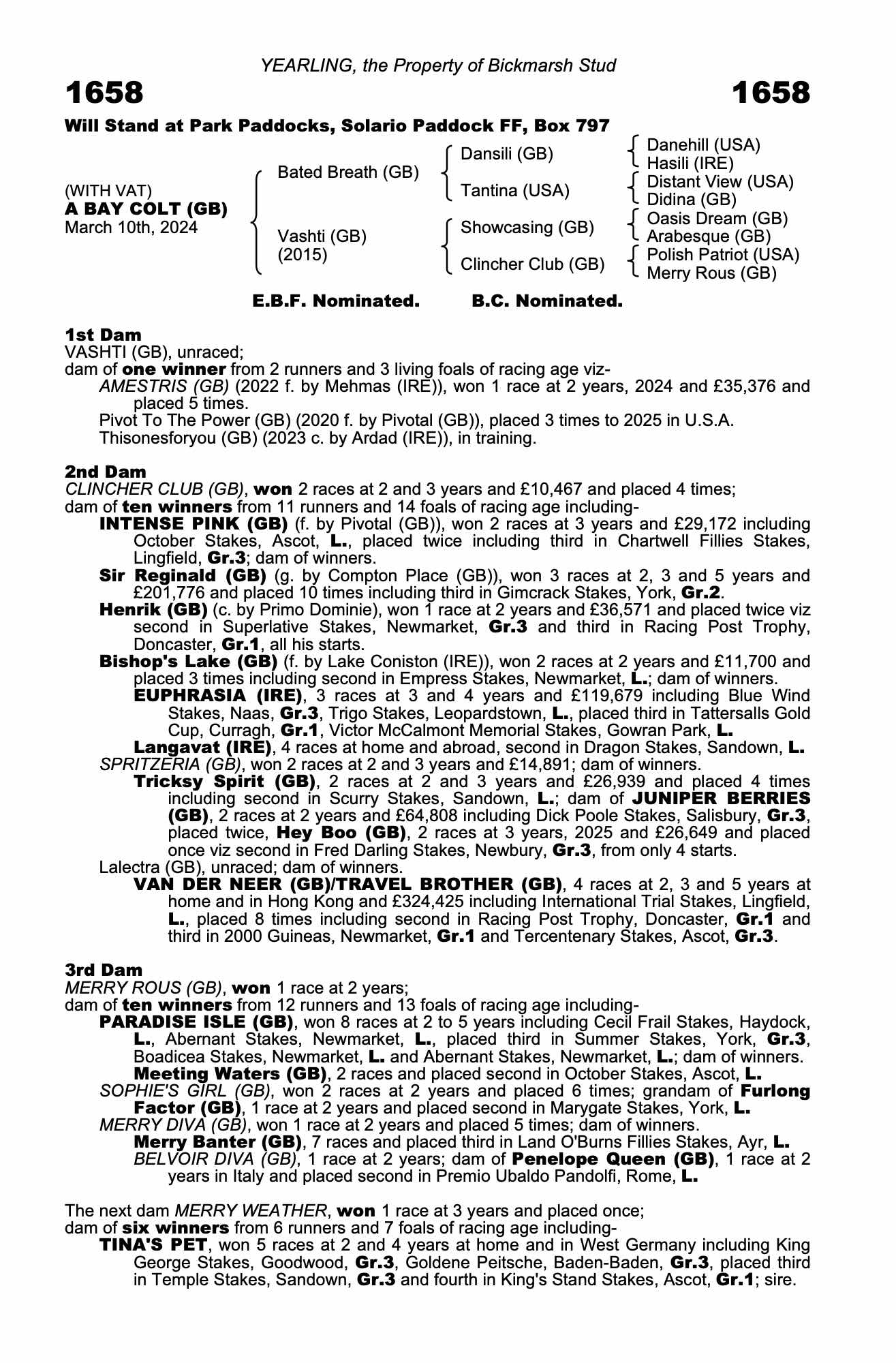 Saturday 6 September:  Half sister: Pivot To The Power (GB) (2020 f. by Pivotal (GB)), placed 4 times at 5 years, 2025 in U.S.A. and £12,411.