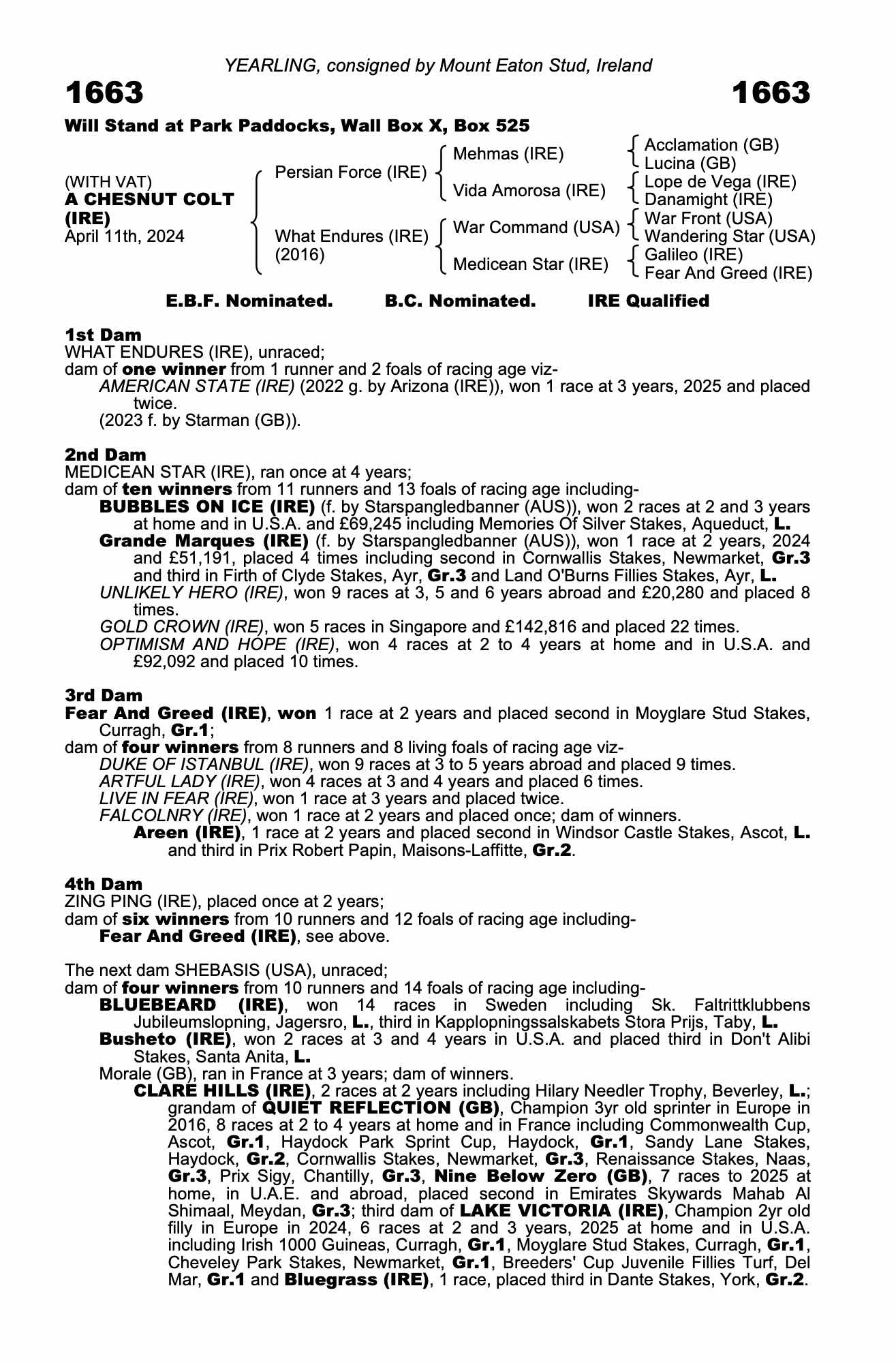 Consignor: Mount Eaton Stud, Ireland