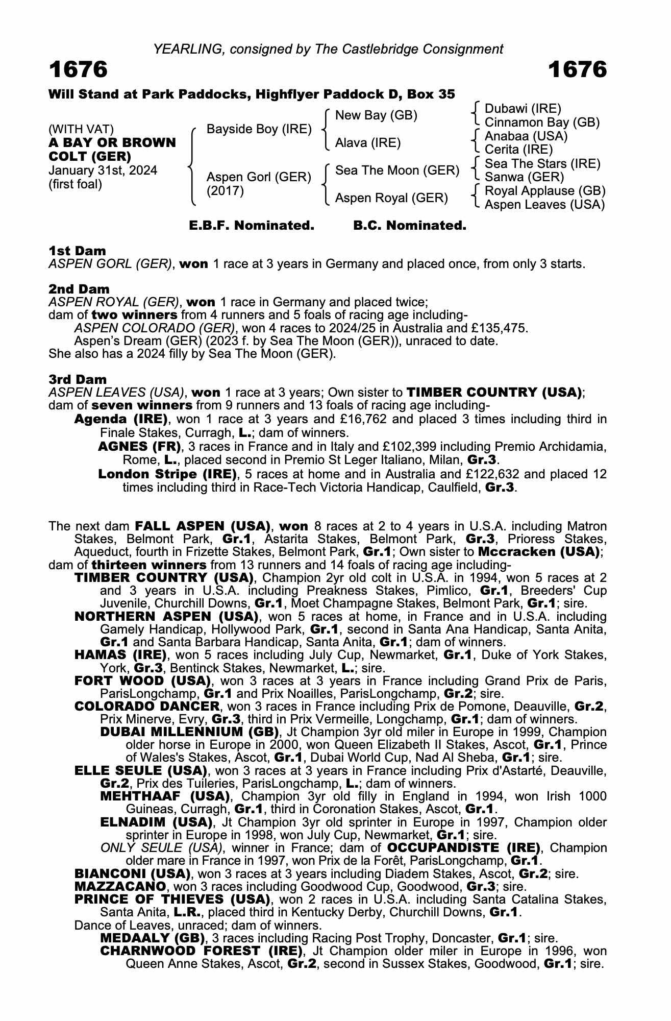 Bayside Boy (IRE) / Aspen Gorl (GER) B/Br.C. (GNY)