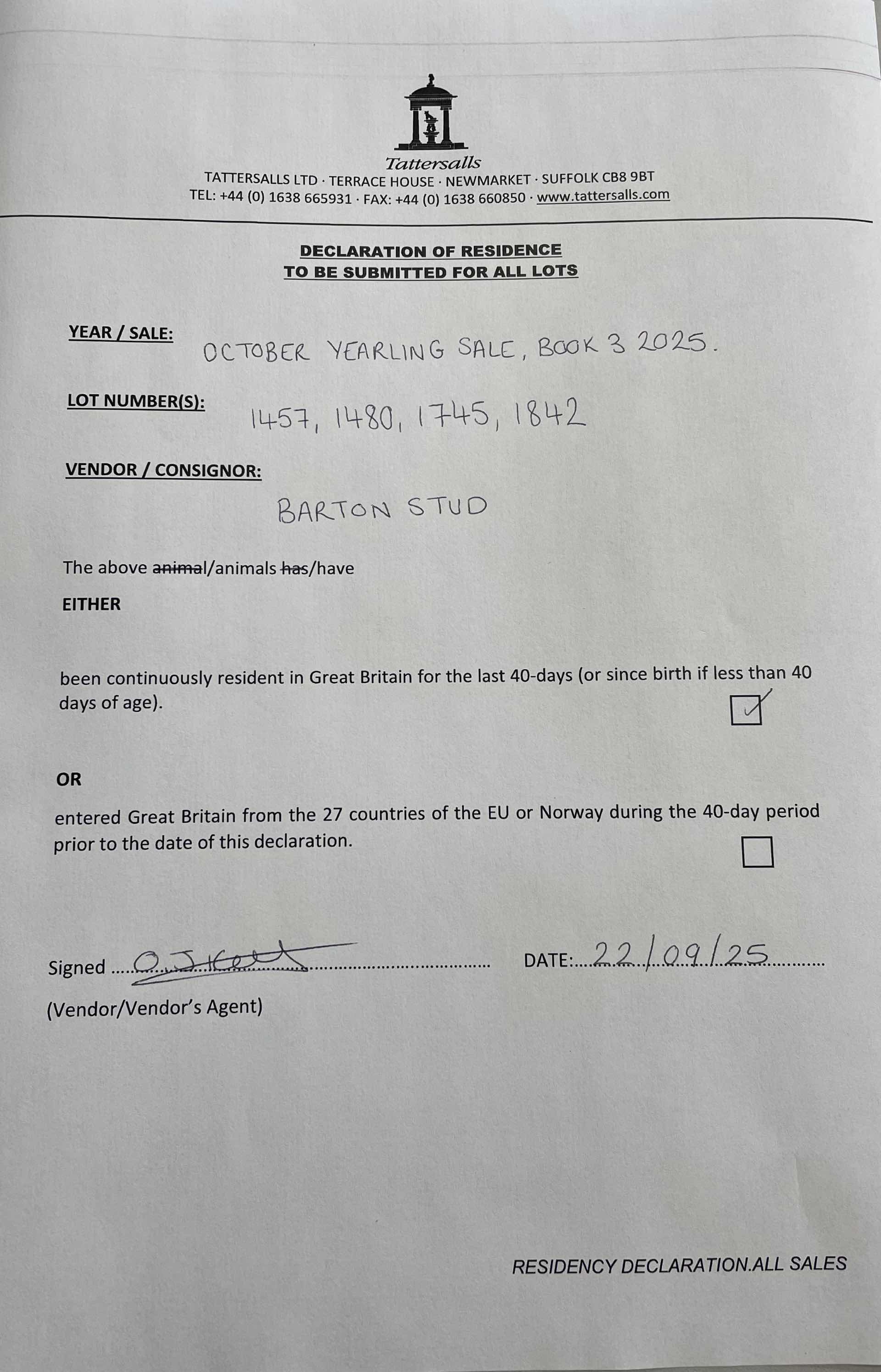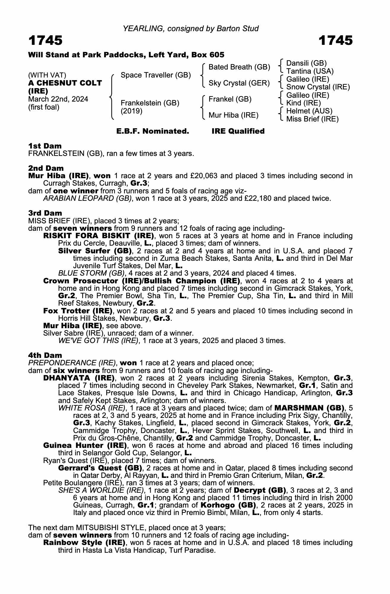 Sapphire Sale 2025 lot 110 C. 2025, Castledillon Stud (Agent)=>Hyde Park Stud €1,000