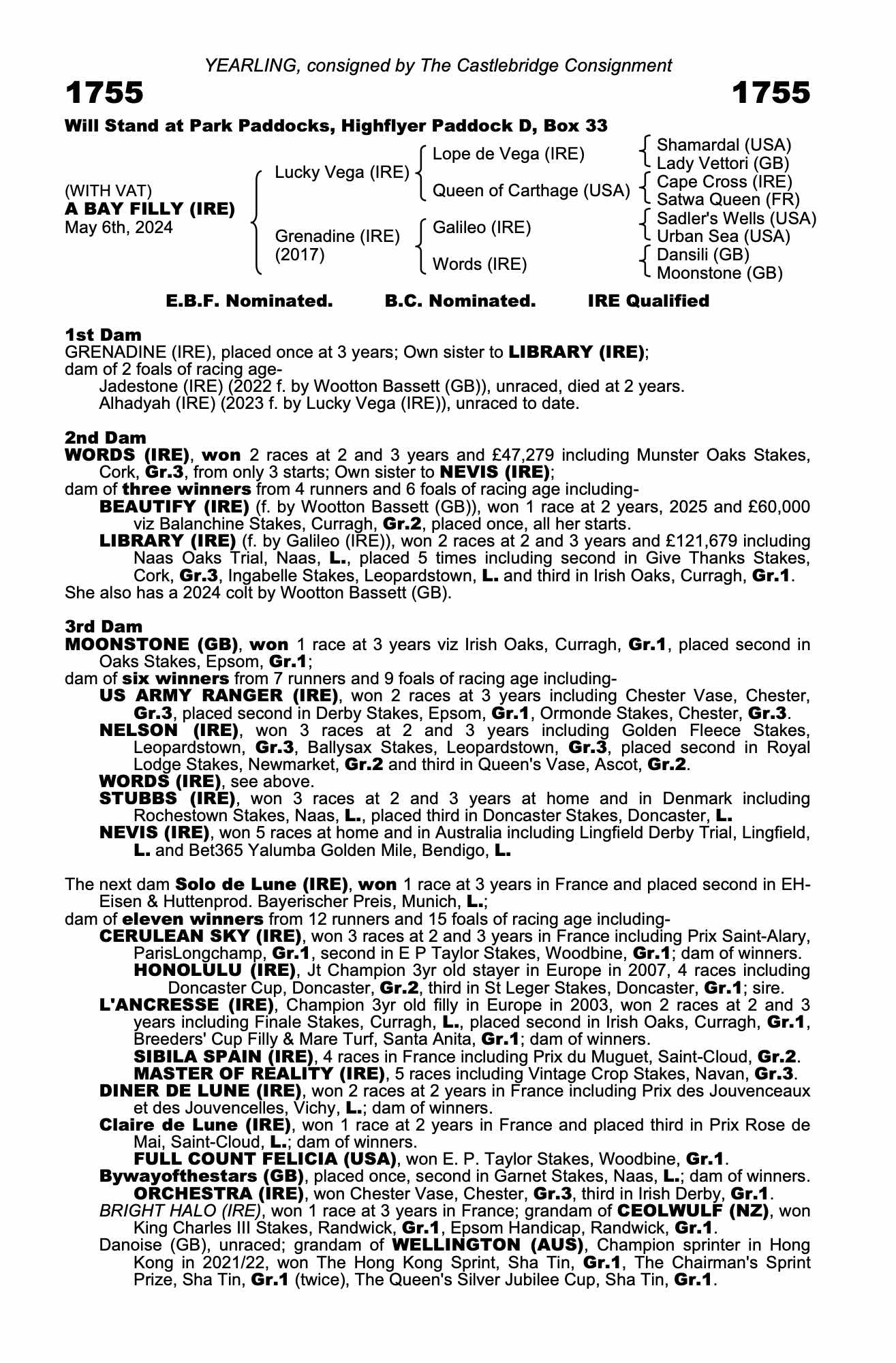 Lucky Vega (IRE) / Grenadine (IRE) B.F. (IRE)