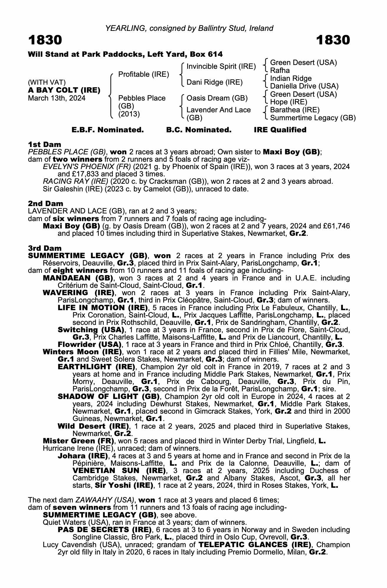 Lot 1830 Profitable (IRE) /Pebbles Place (GB) B.C. (IRE)