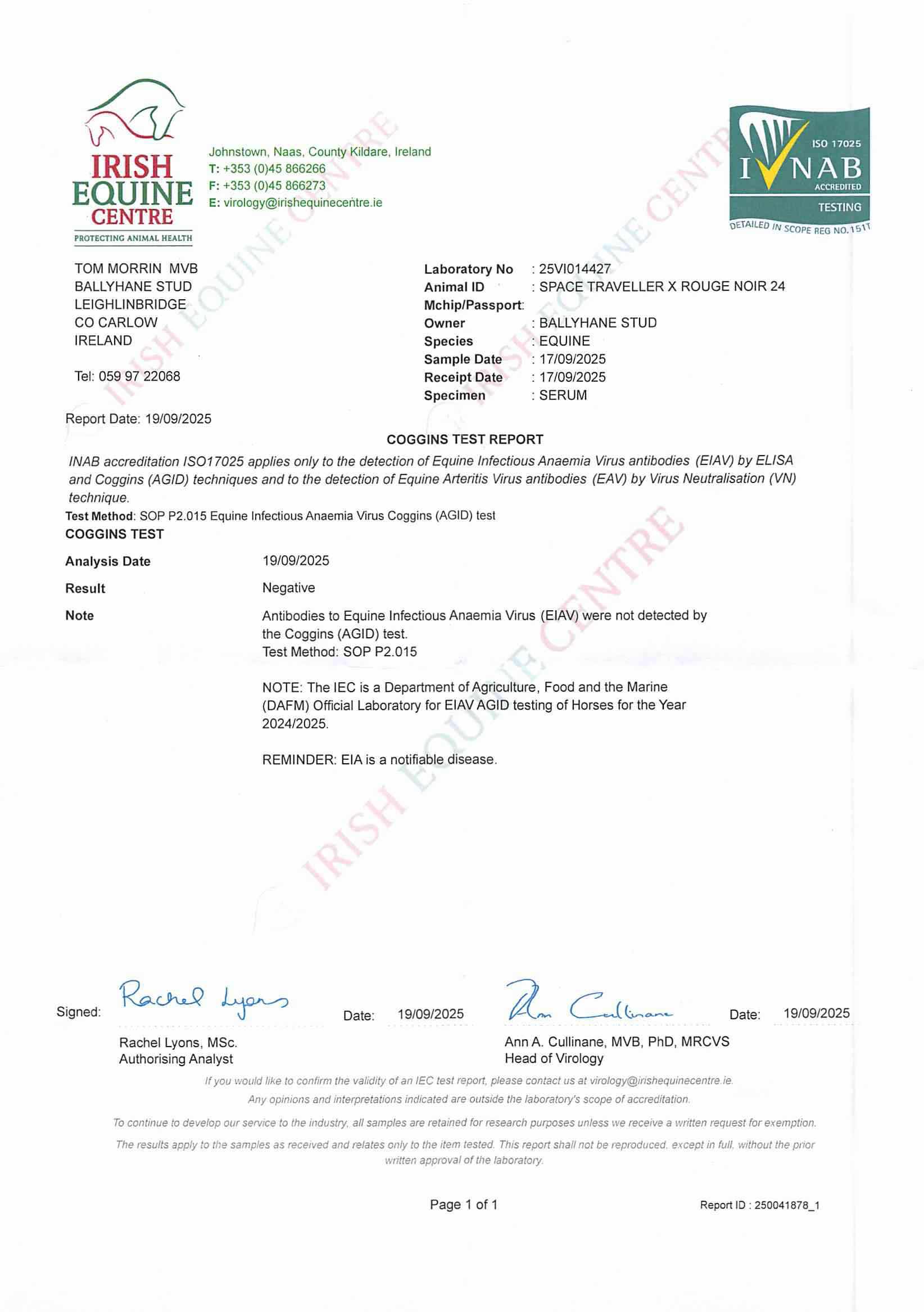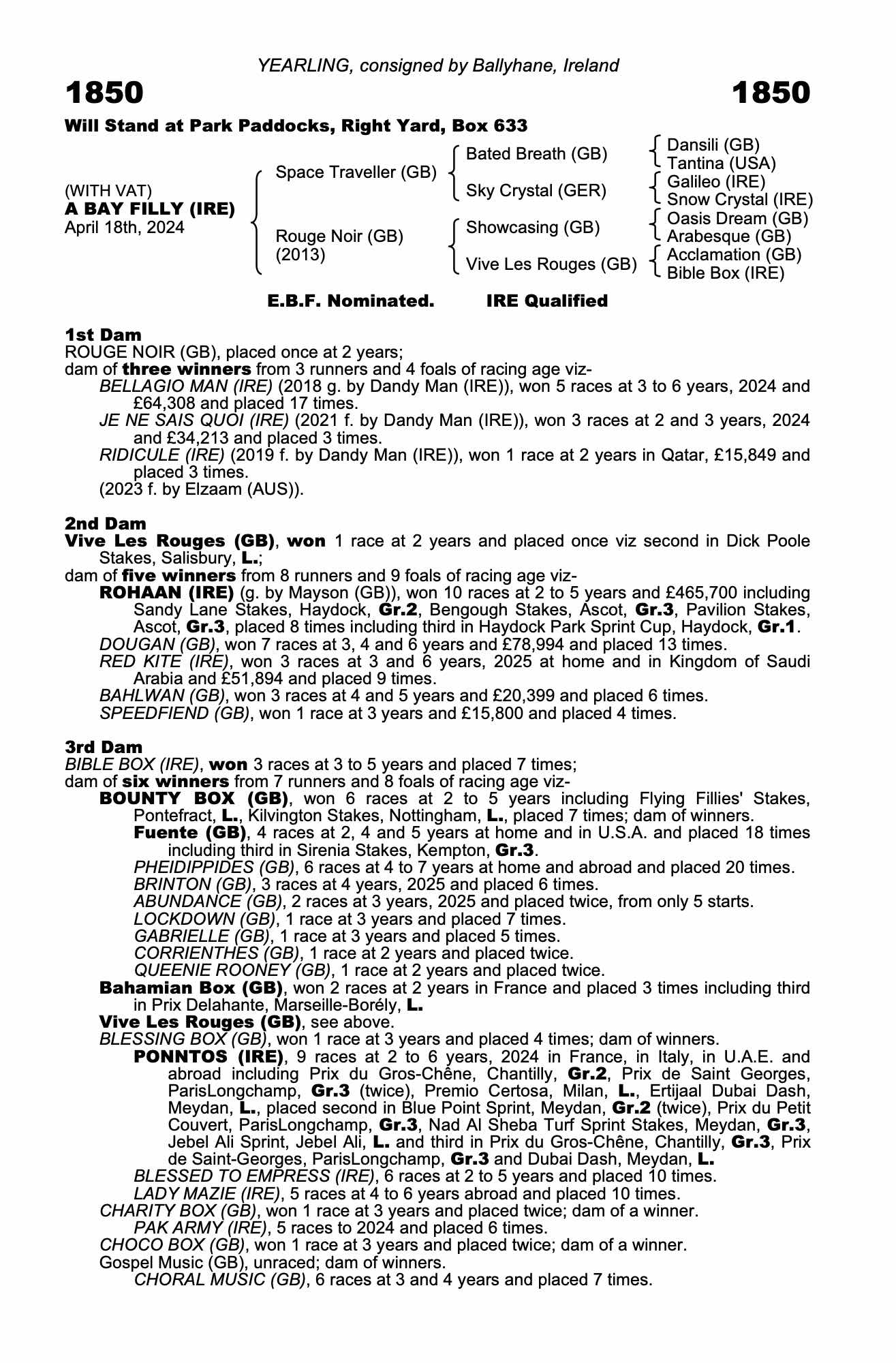 Space Traveller (GB) / Rouge Noir (GB) B.F. (IRE)