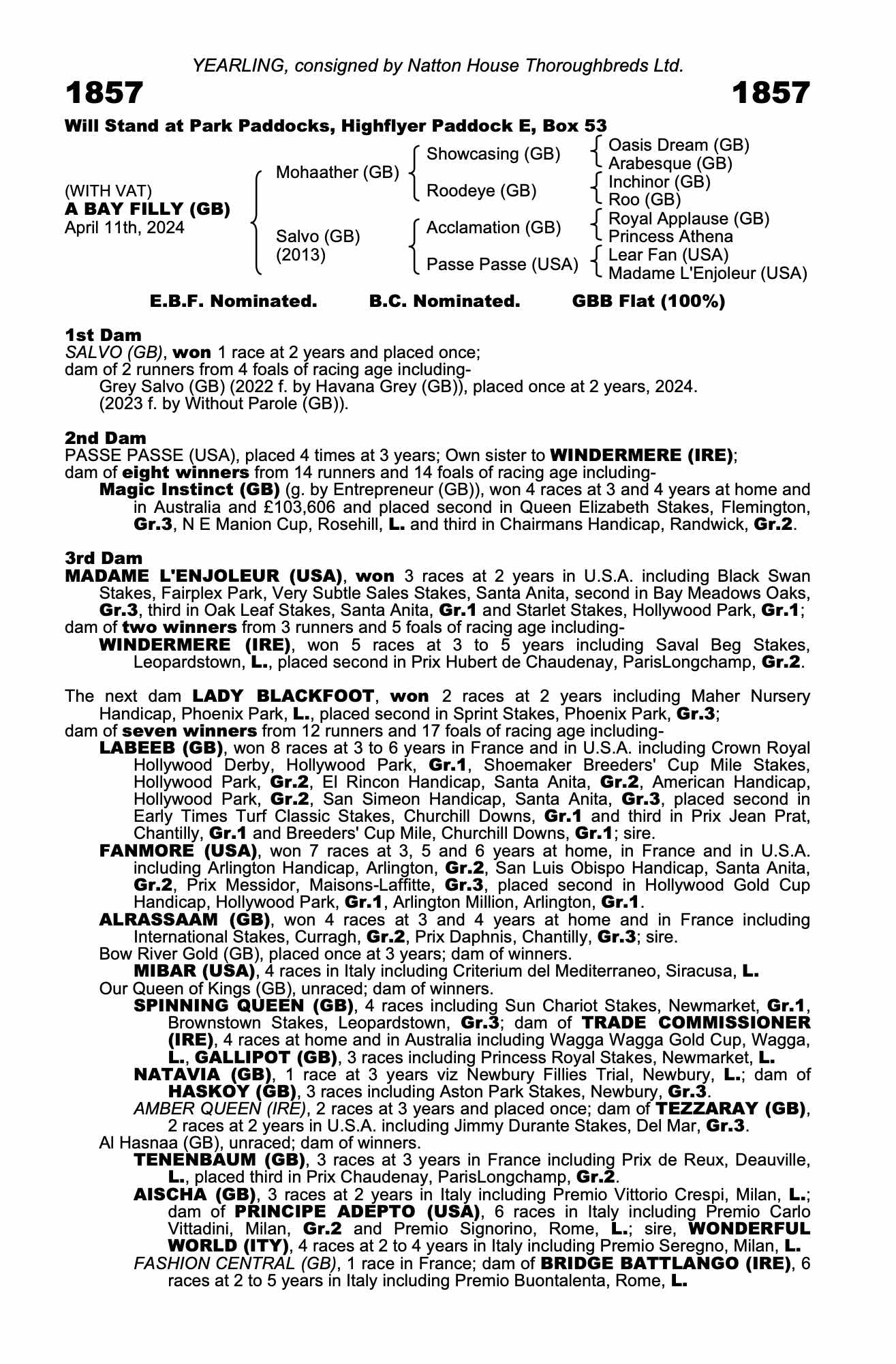 Online Sale - 21st November 2024 lot 146 F. by Without Parole (GB) 2023, Natton House Thoroughbreds Ltd.=>Lot Not Sold 4,800 gns