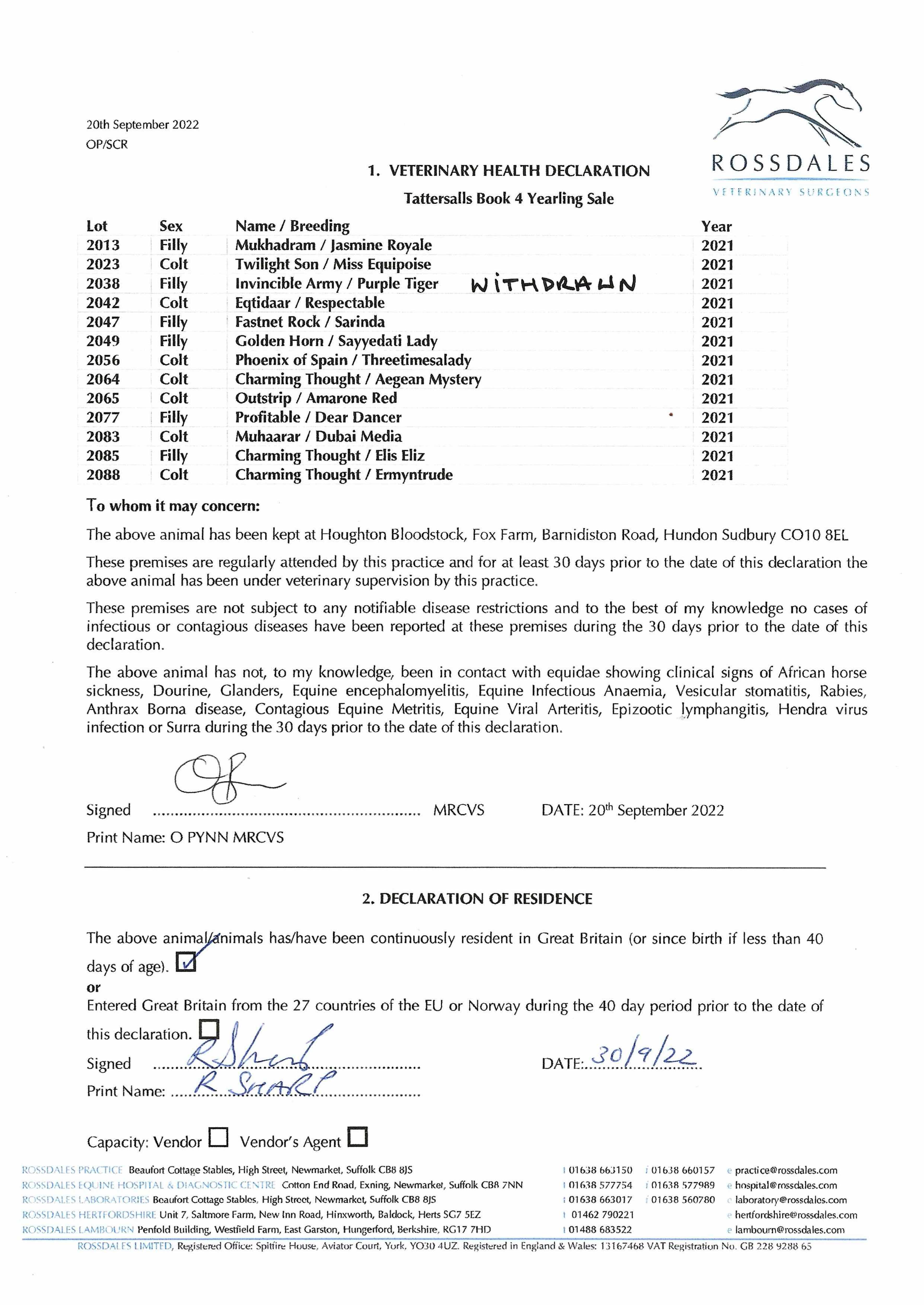 October Yearling Sale, Book 4 2020 lot 1978 F. 2019, Rosyground Stud=>Lot Not Sold