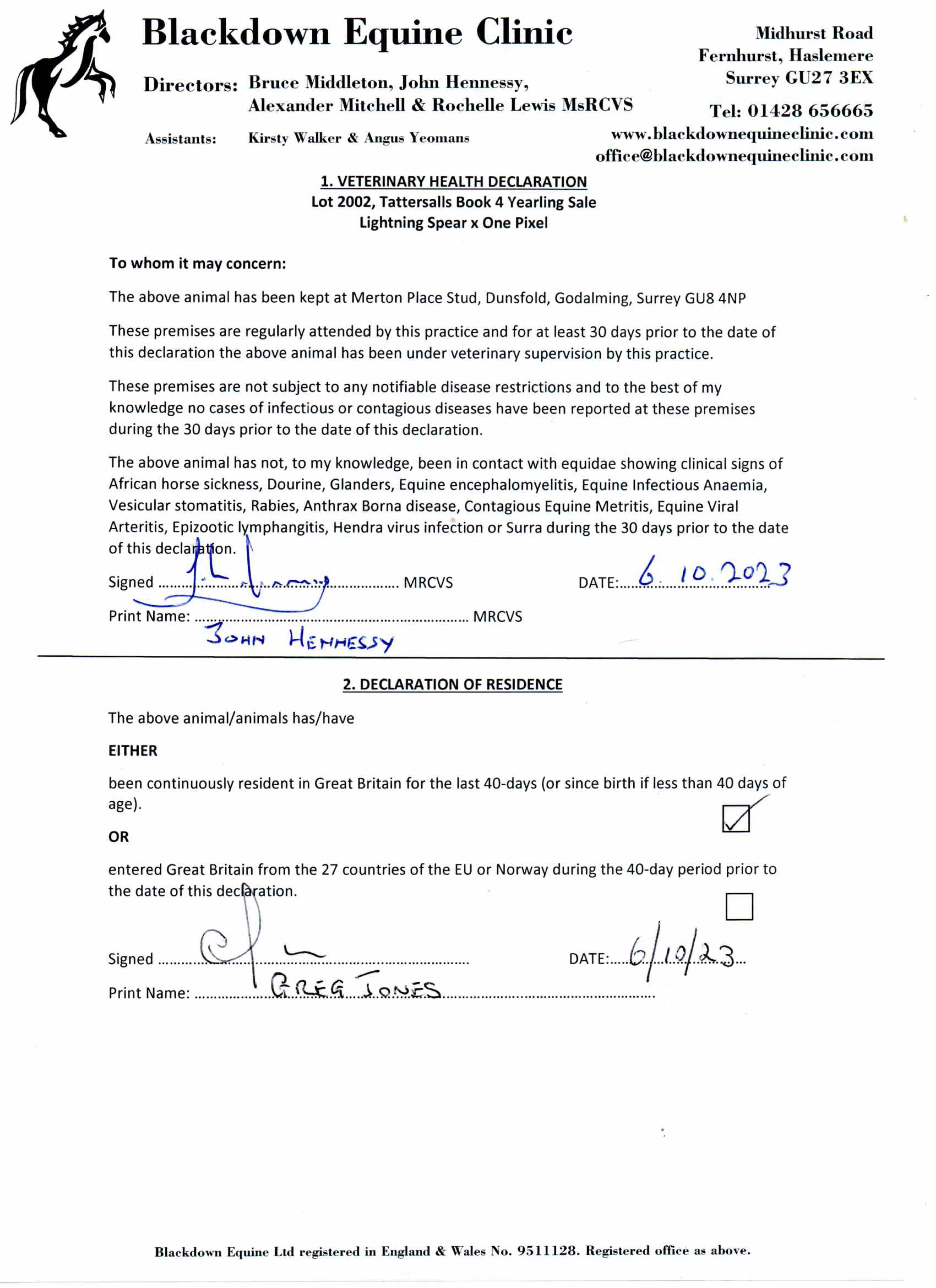 Consignor: Jamie Railton (Agent)