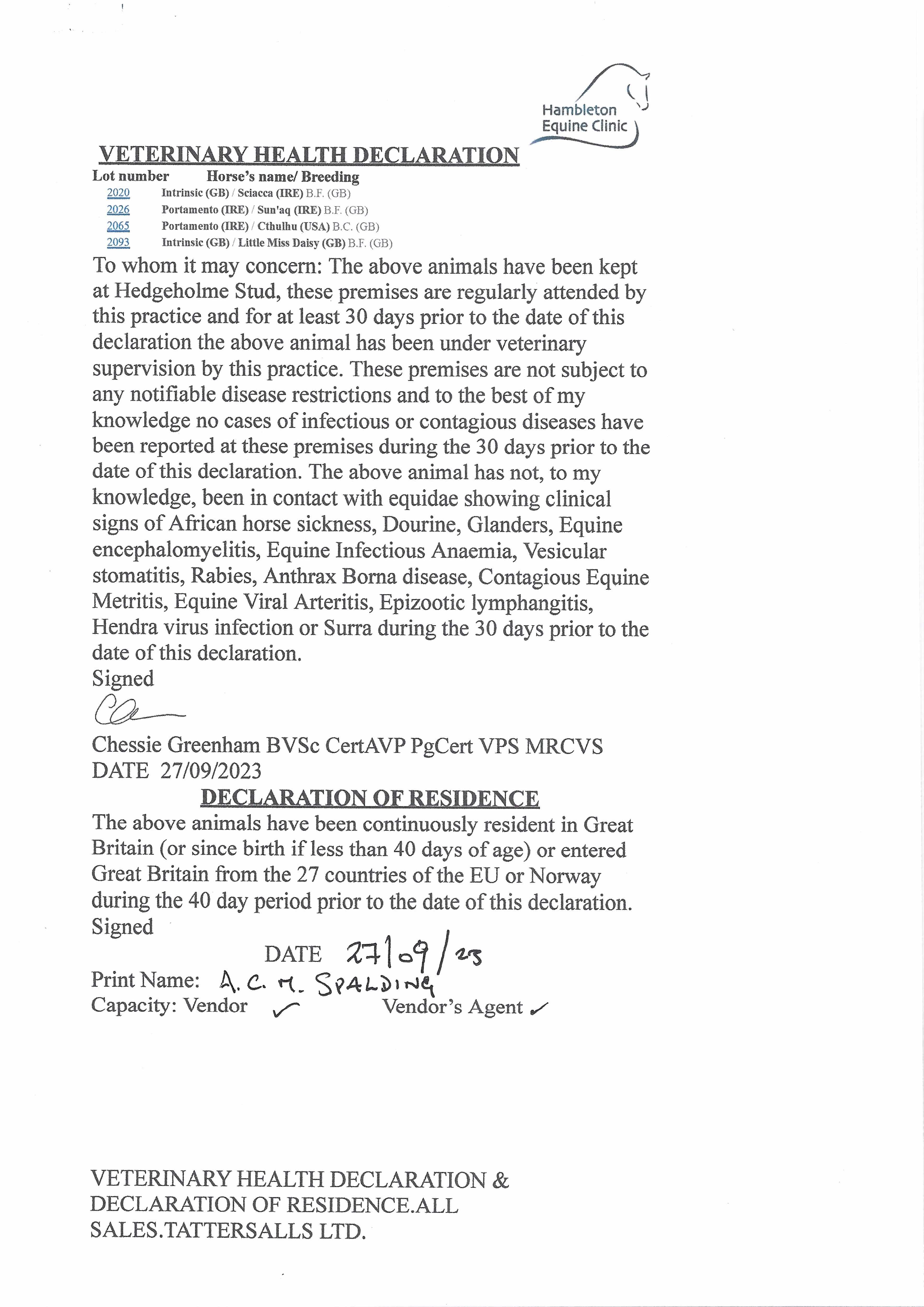 Consignor: Hedgeholme Stud