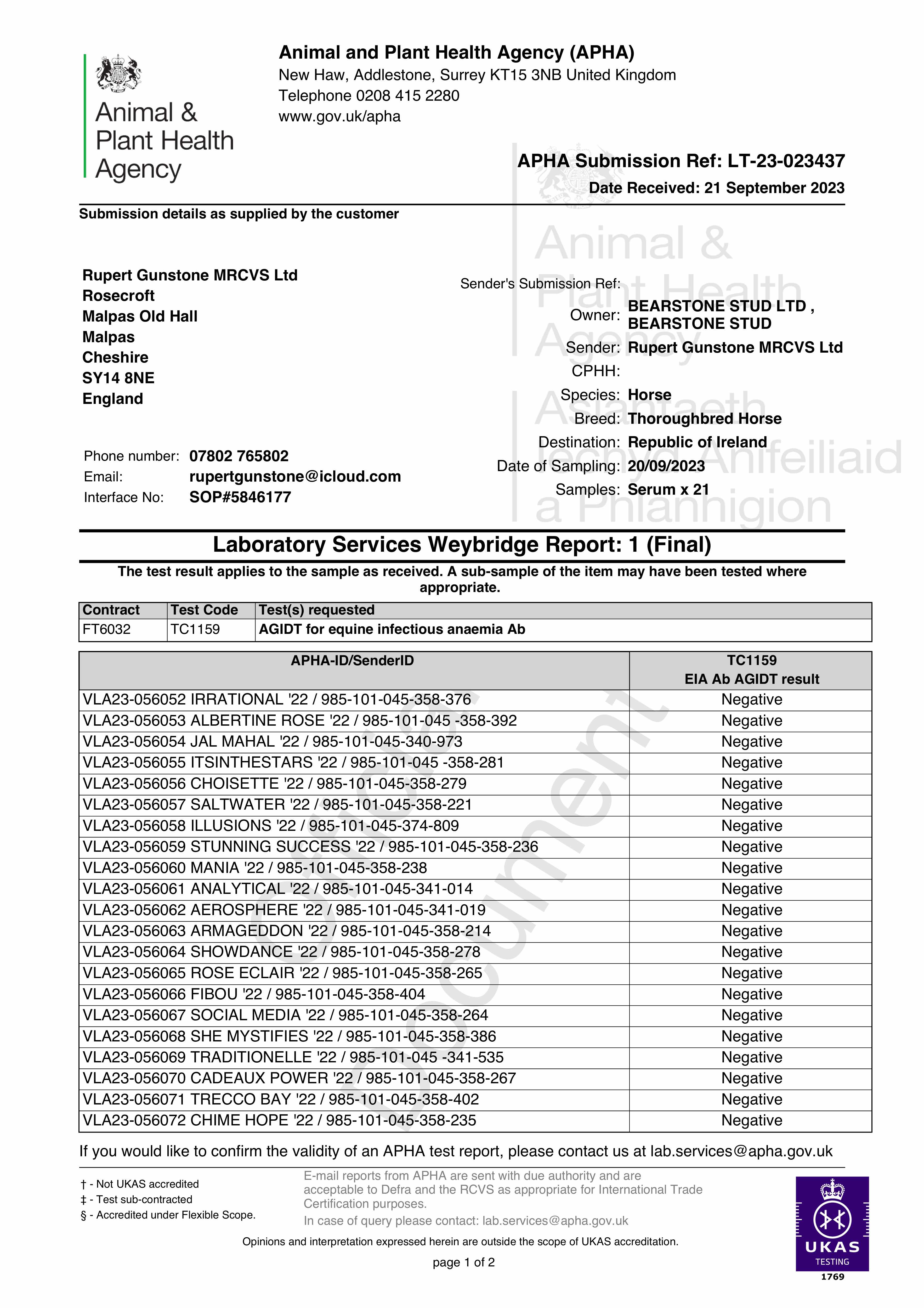 Online Sale - 23rd November 2023 lot 109, Bearstone Stud=>Lot Not Sold 900 gns