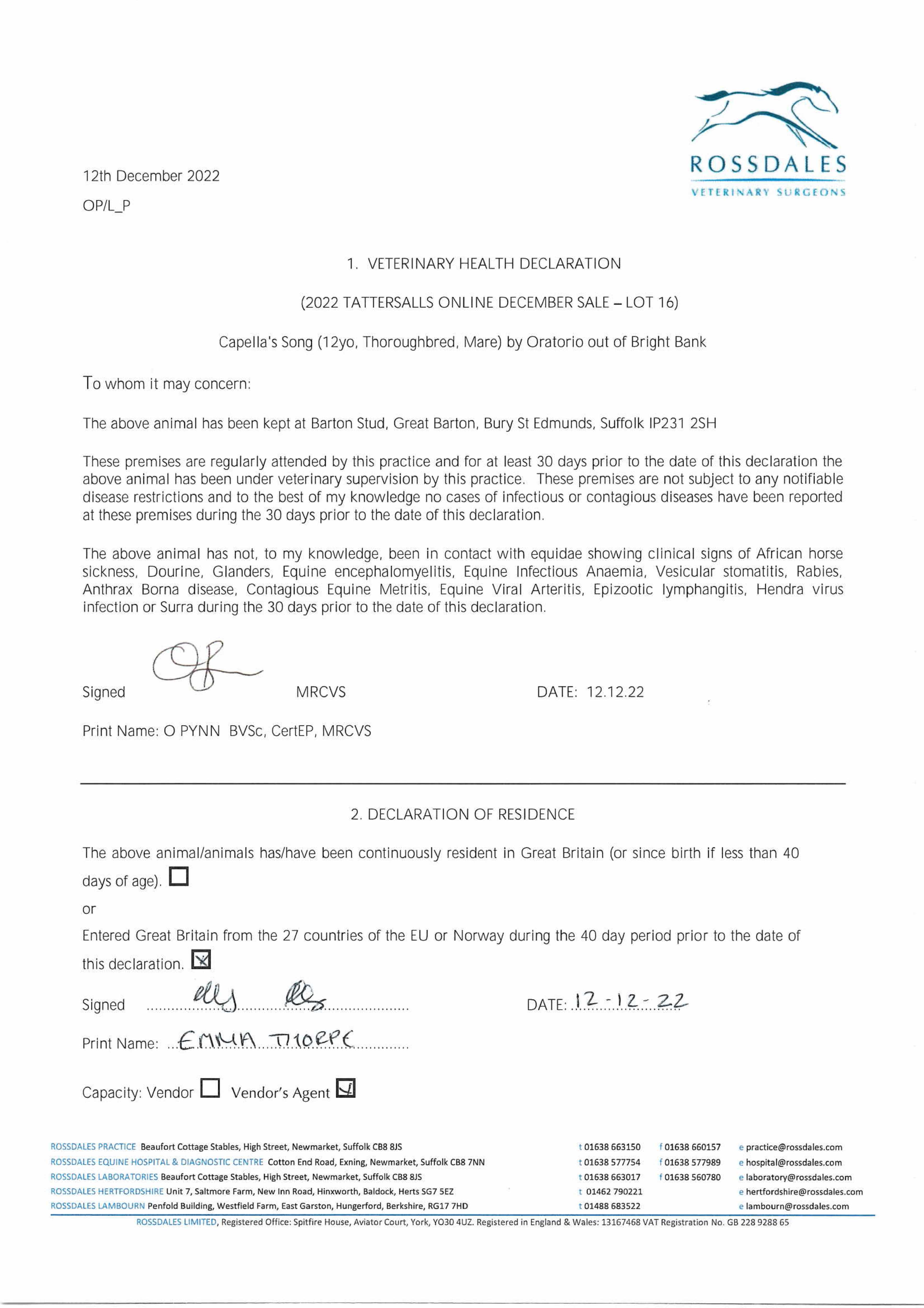 For time sensitive requests please call Tattersalls on +44(0)1638665931