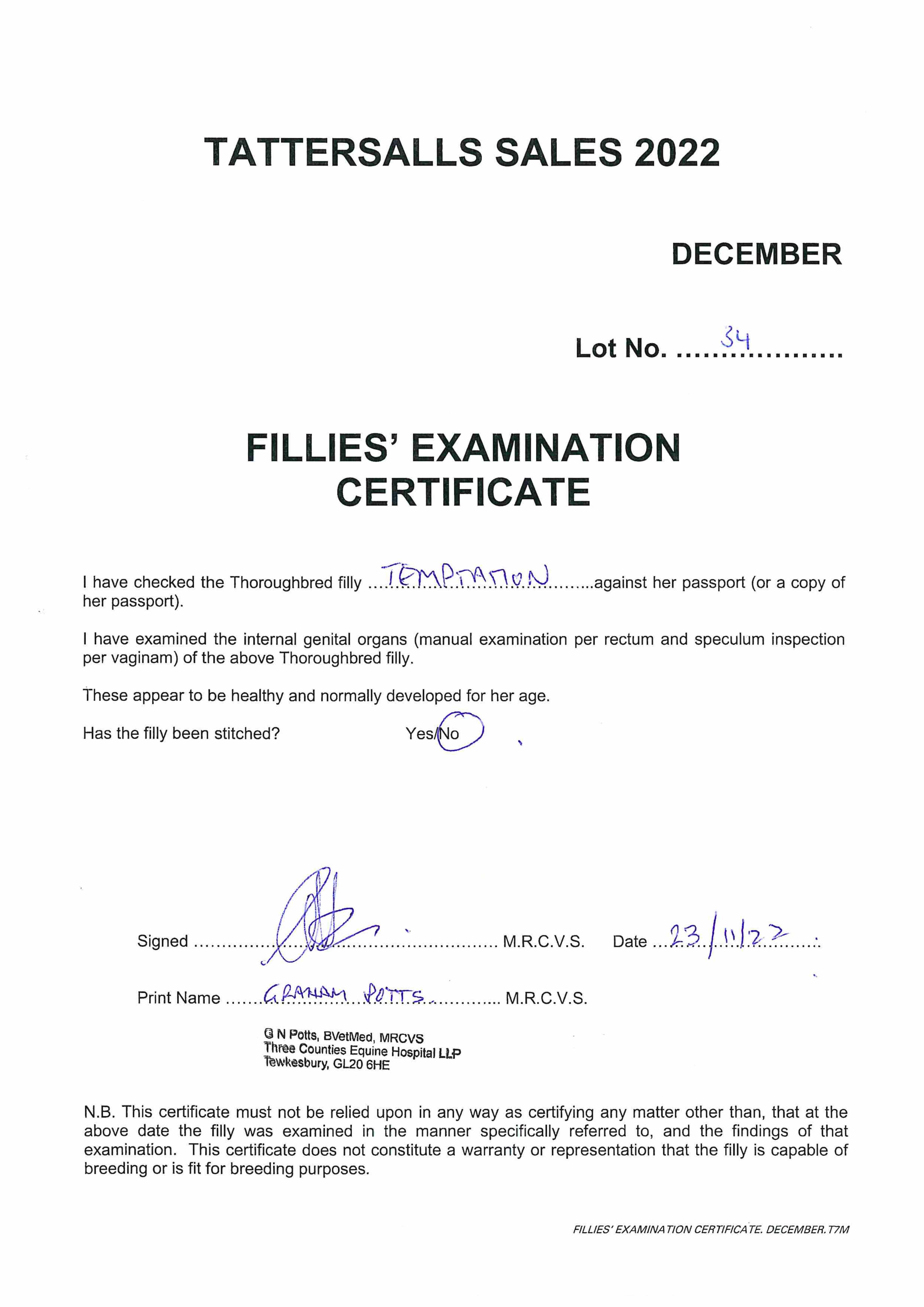 Vendor's Notes: Horse In Training with Roger Charlton until March 2022. She had a kissing spine operation on 31st January 2022, and whilst a full recovery was made we rather ran out of time.