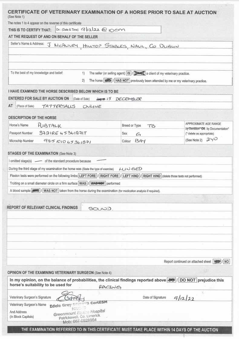 For time sensitive requests please call Tattersalls on +44(0)1638665931