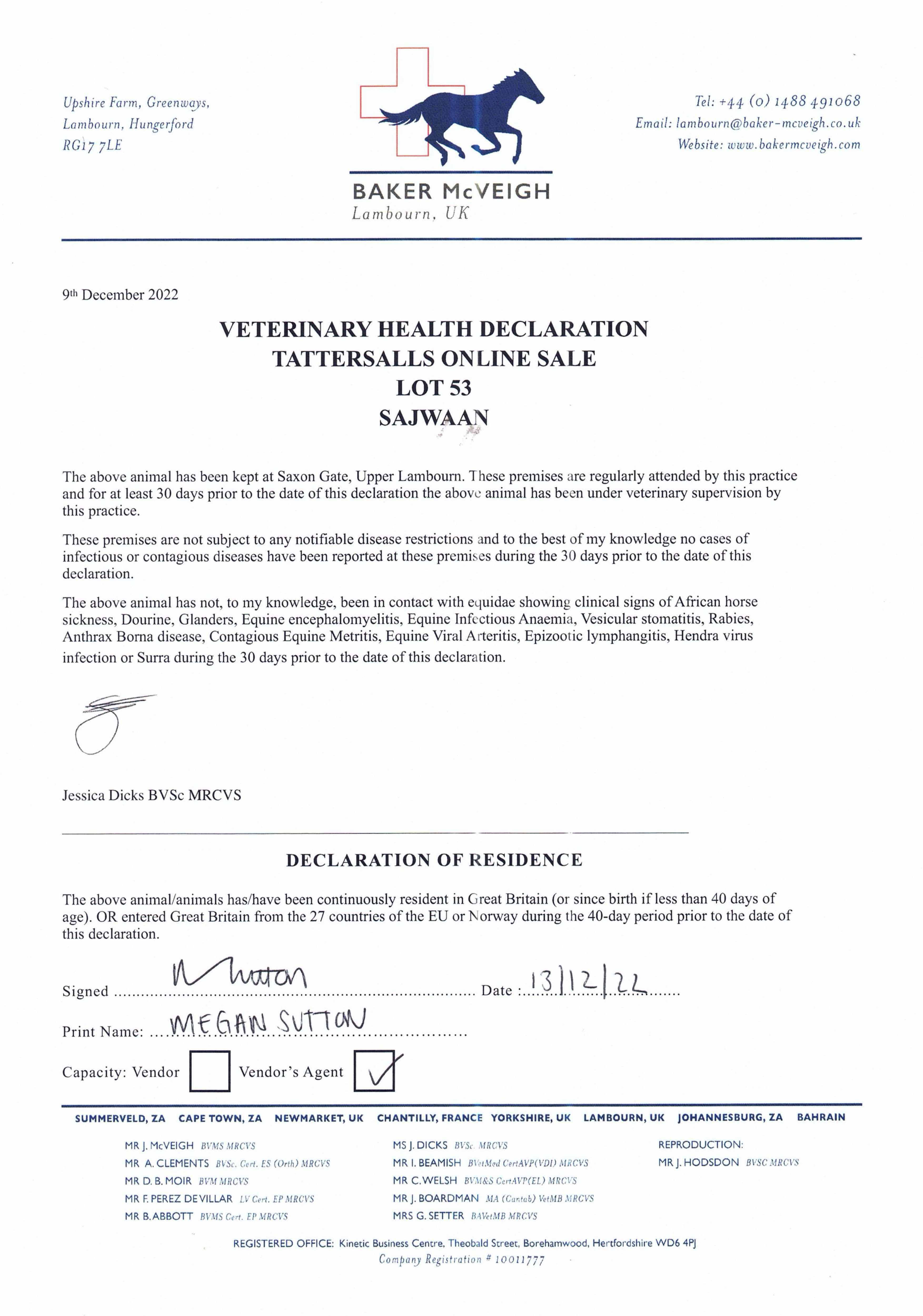 December Mare Sale 2023 lot 1333 Leaves of Grass (GB) (F. by Invincible Spirit (IRE)), Voute Sales Ltd. (Agent)=>Fujiwara Farm 20,000 gns