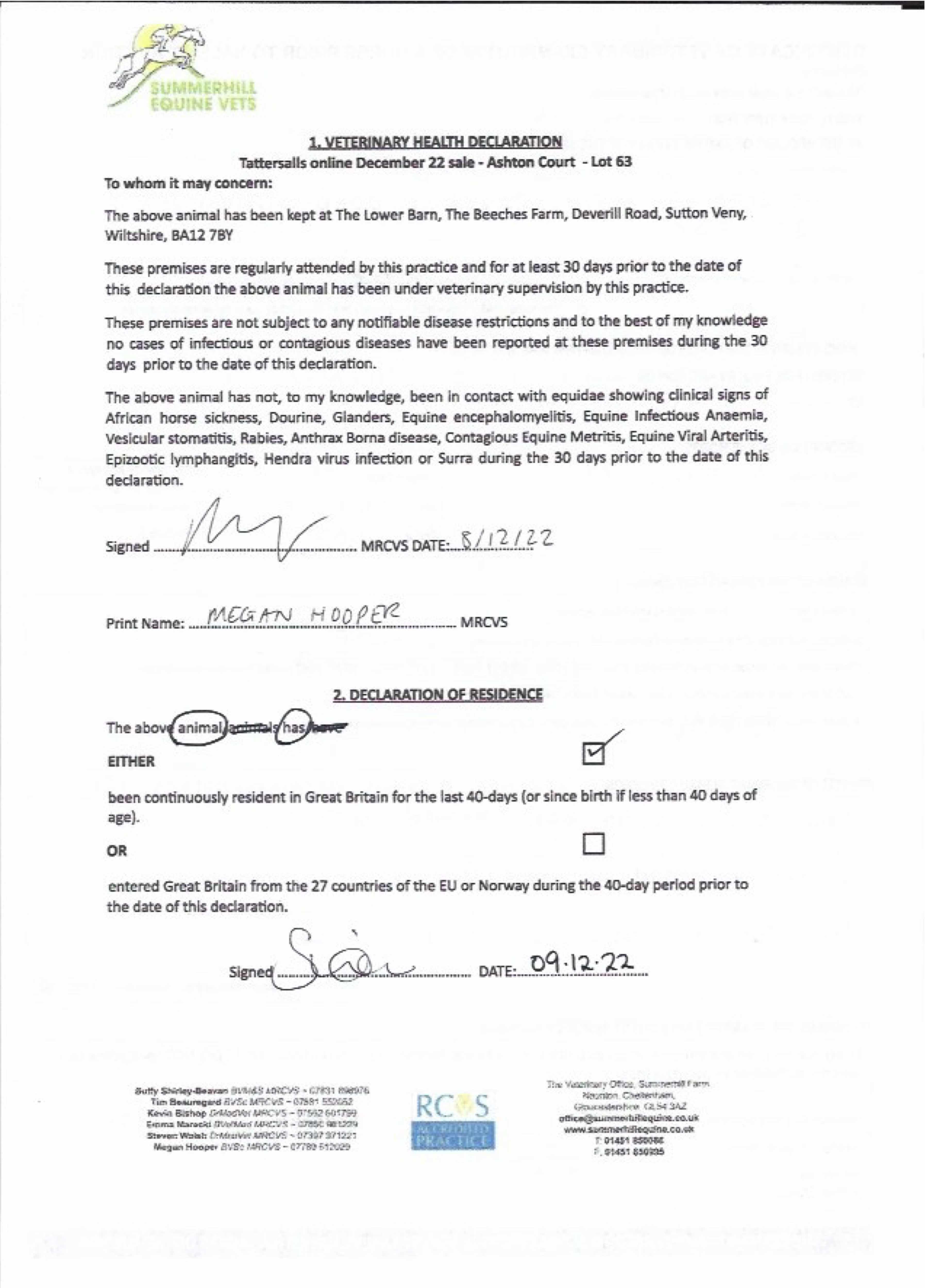 Vet Certificate