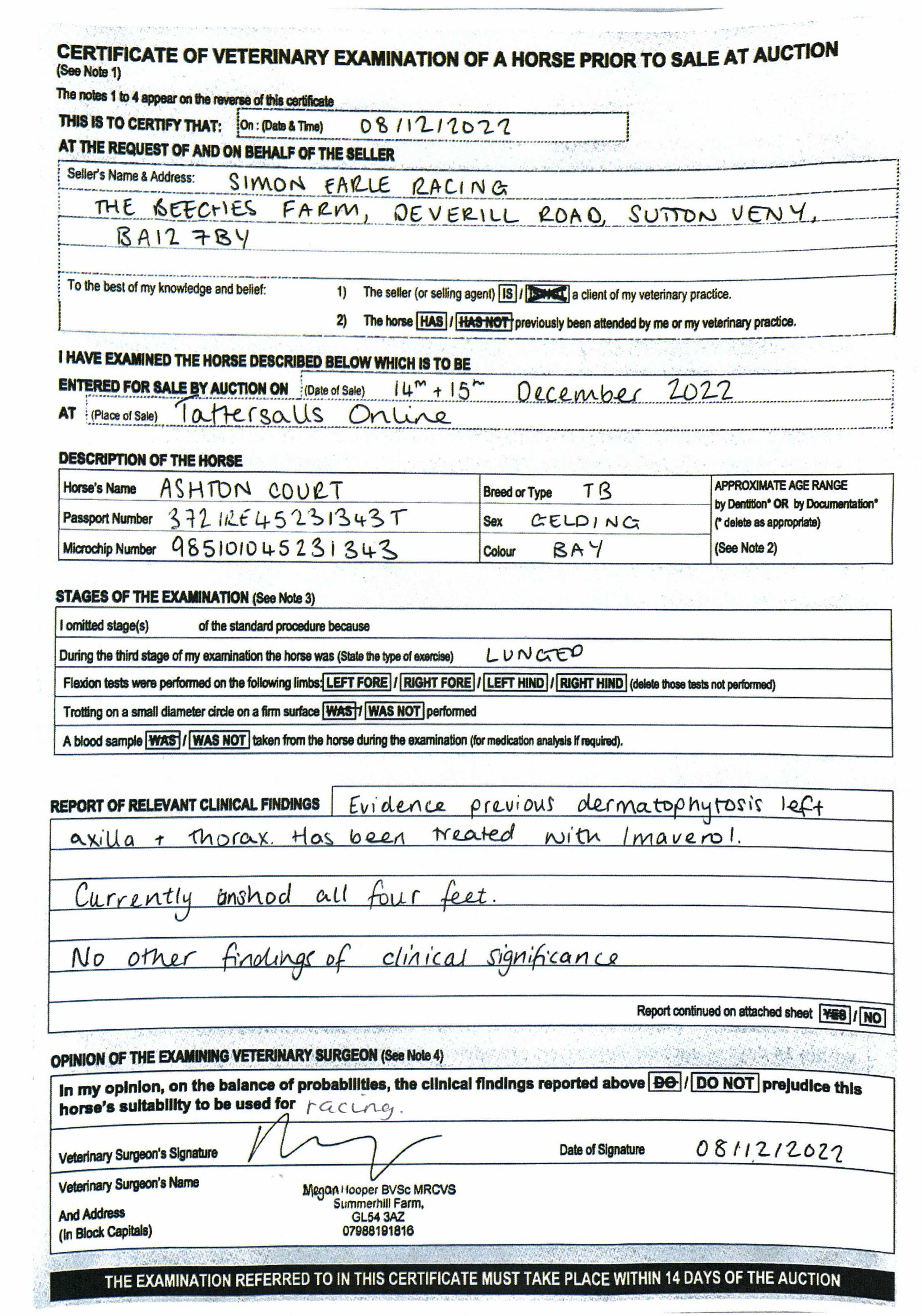 Vendor's Notes: Ashton Court is a lovely horse and a great mover. He has had one run over fences in Ireland and is likely to improve over the larger obstacles.