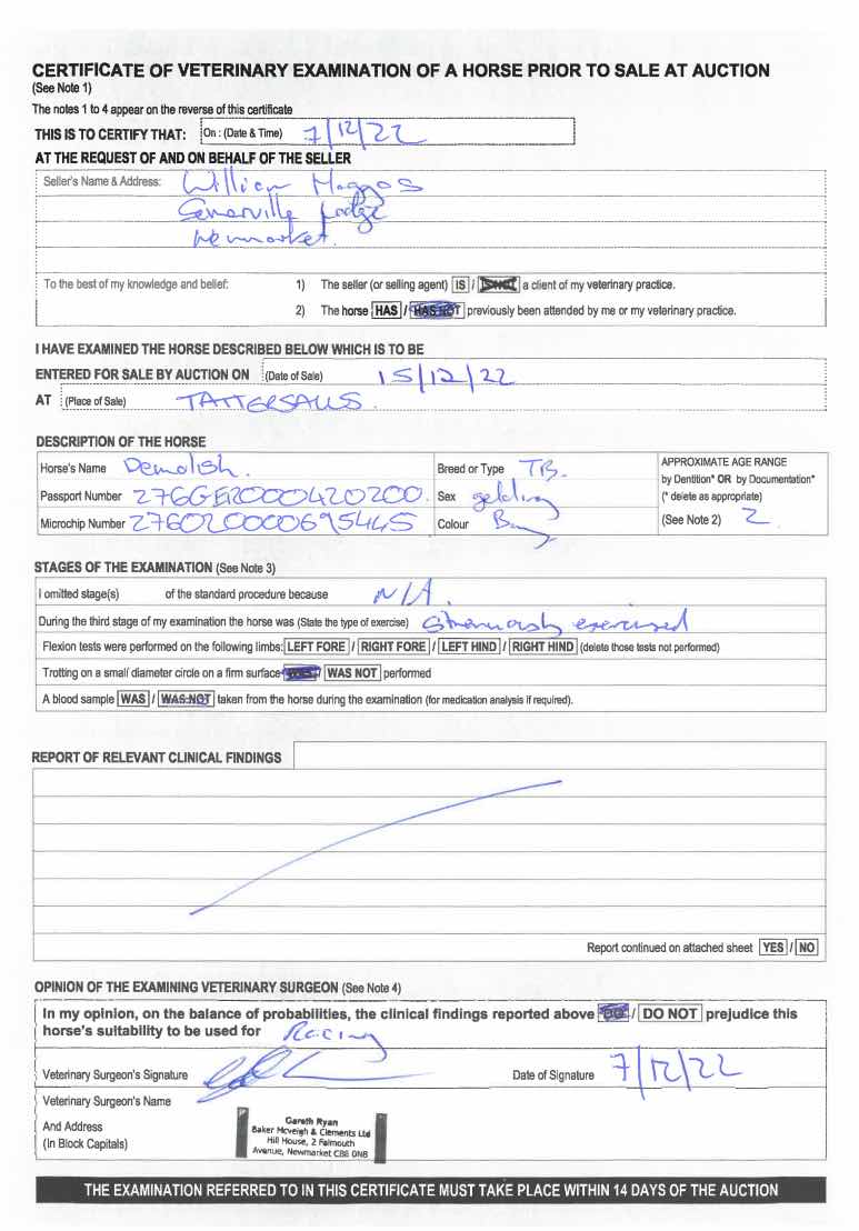 For time sensitive requests please call Tattersalls on +44(0)1638665931