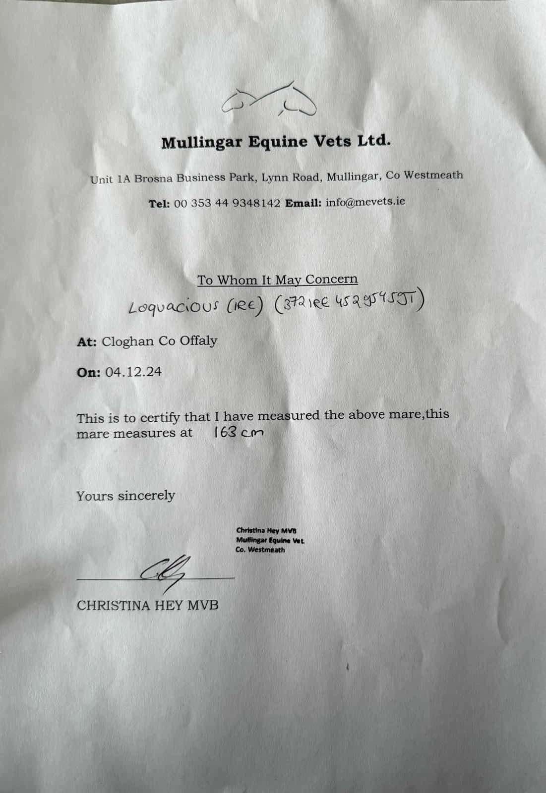 Vendor's Notes: 15.3 1/2 HH or 161CM. Her first produce, a filly by Magna Grecia, is in training in Germany