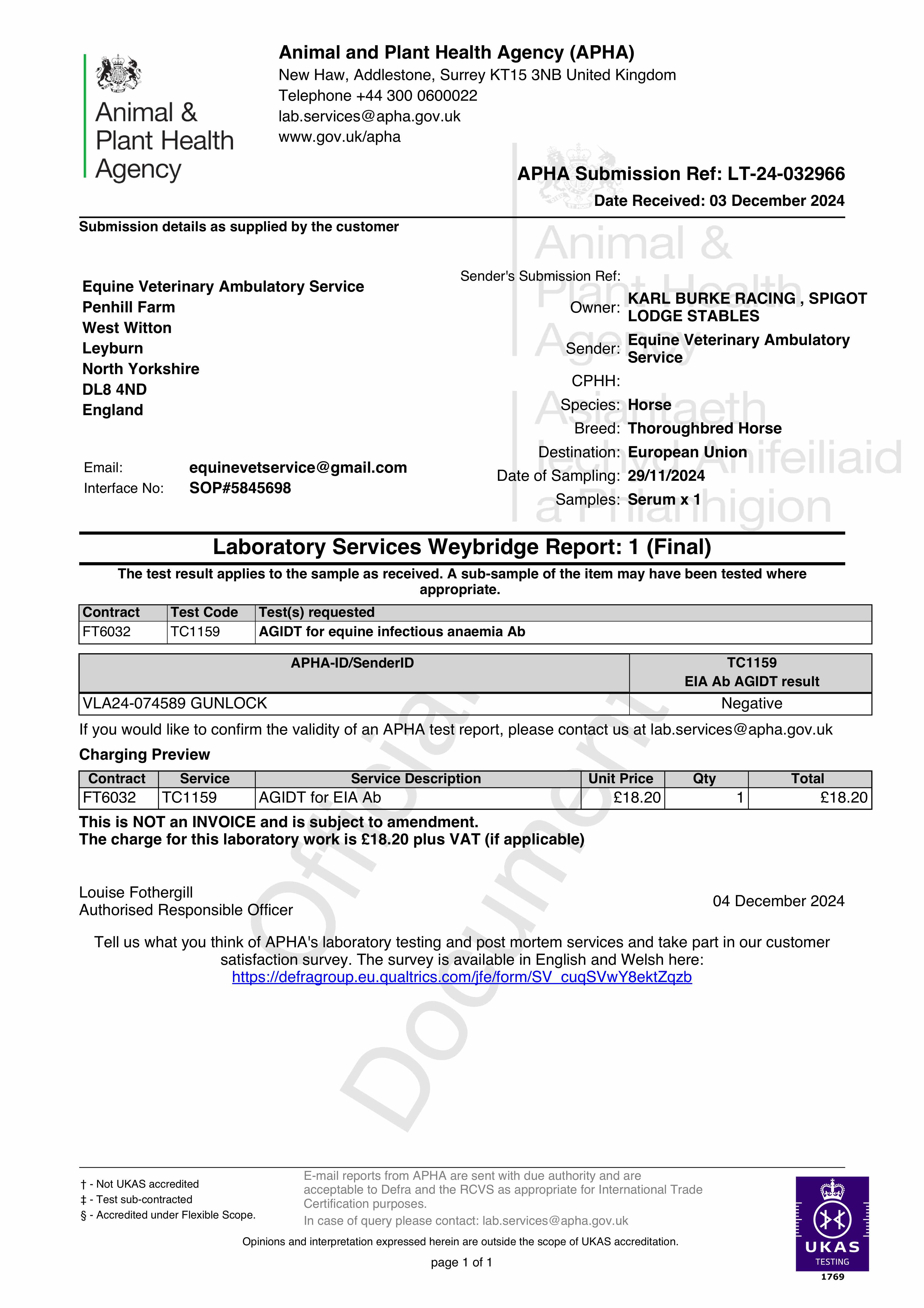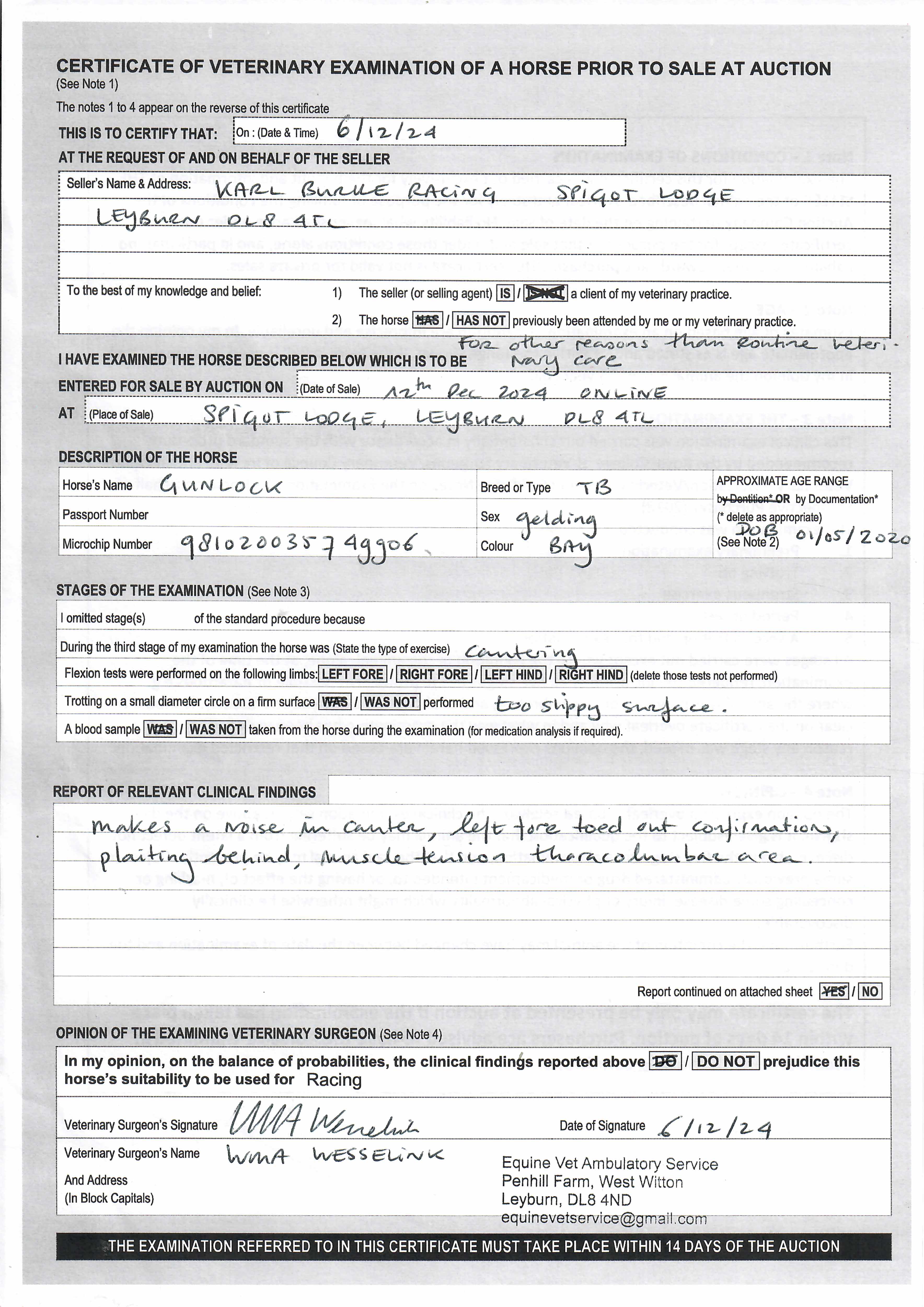 Vet Certificate
