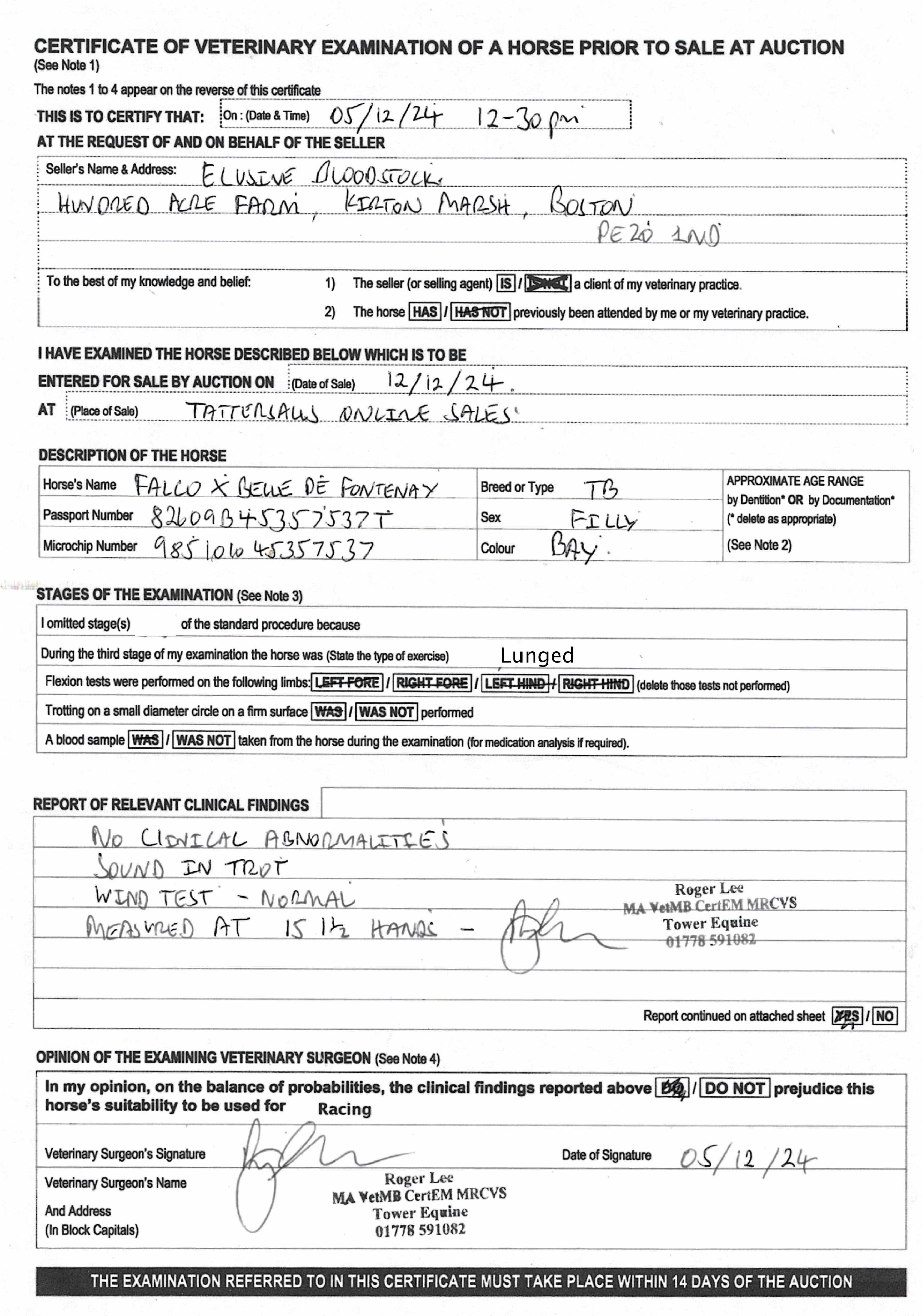For time sensitive requests please call Tattersalls on +44(0)1638665931