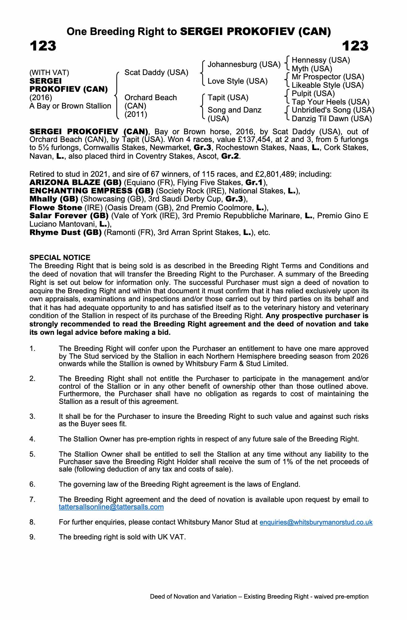 Vendor's Notes: The Breeding Right agreement and the deed of novation is available upon request by email to tattersallsonline@tattersalls.com.