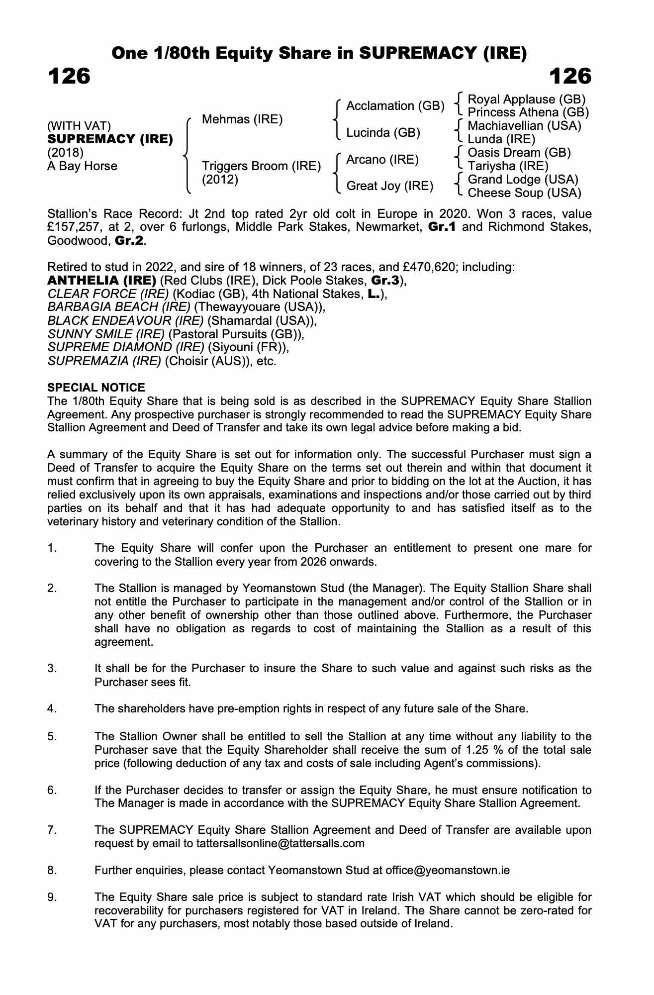 Contact: Yeomanstown Stud ✆ +353 (0) 45 897314 ✉ office@yeomanstown.ie