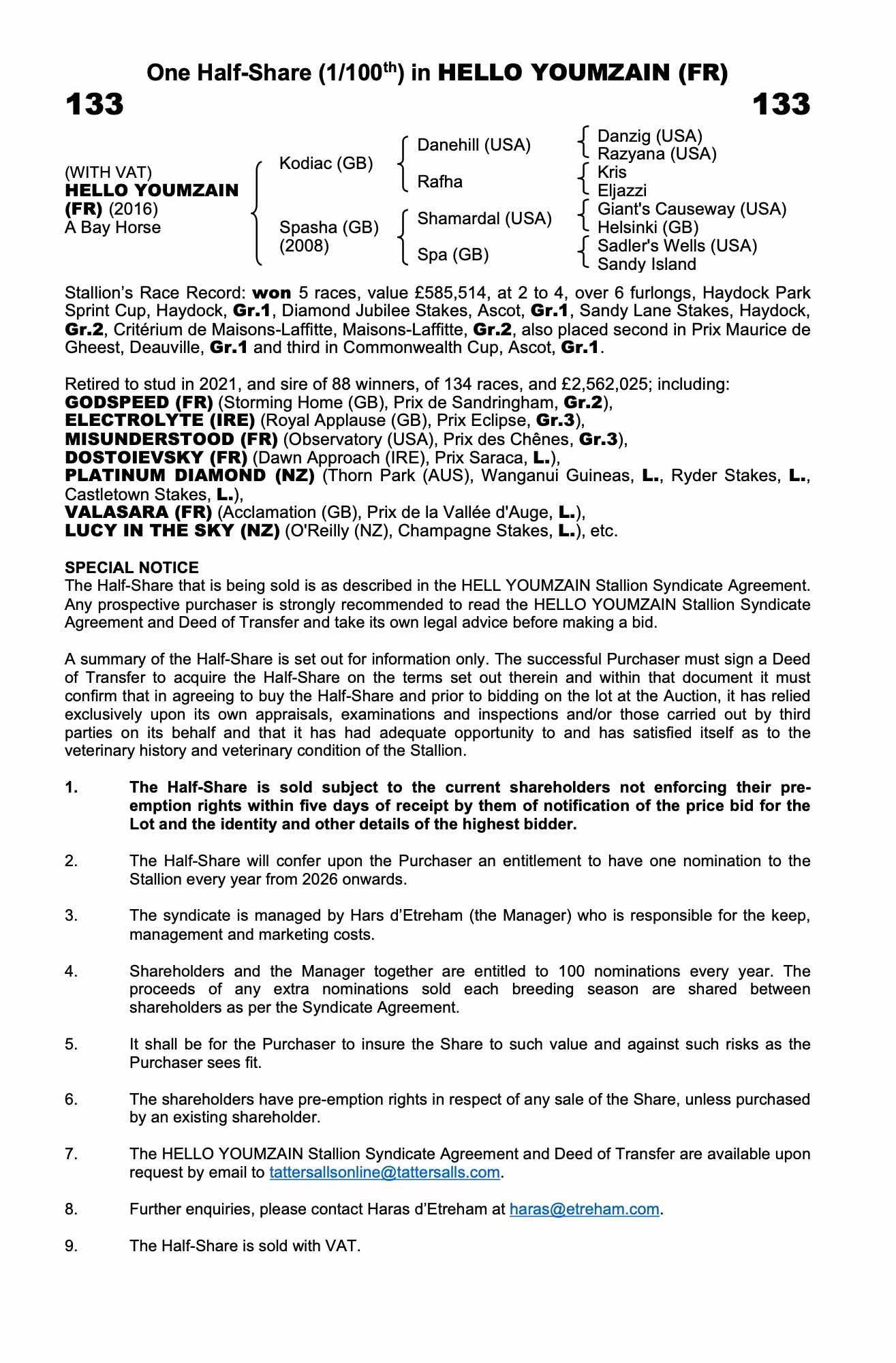 Vendor's Notes: The Breeding Right agreement and the deed of novation is available upon request by email to tattersallsonline@tattersalls.com.