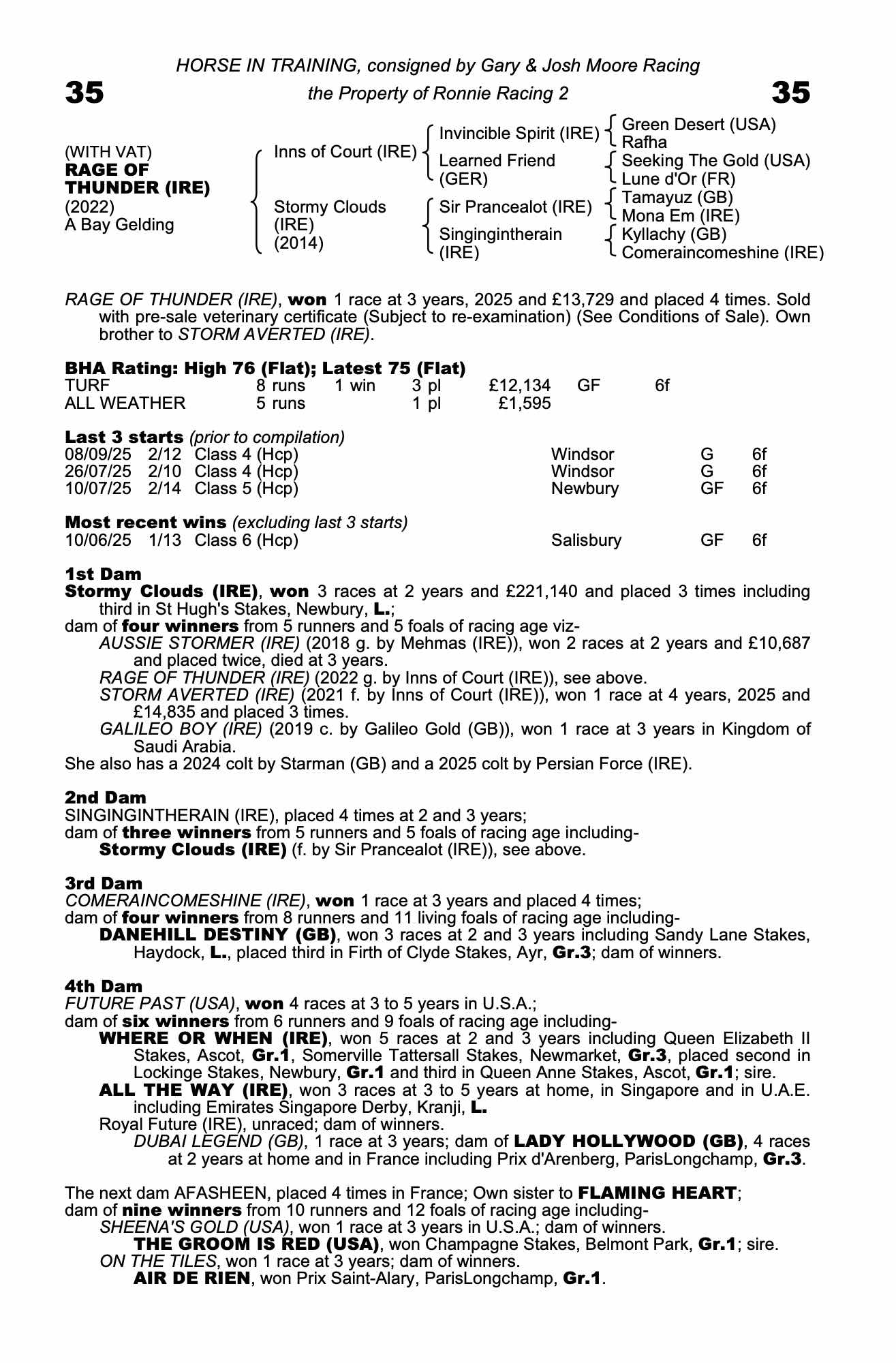85| 2025 | Sep 8 | Wnd | 75 | 9/1 | 2-12 | Tom Queally | 6.1g | 82 | 83 | + | |