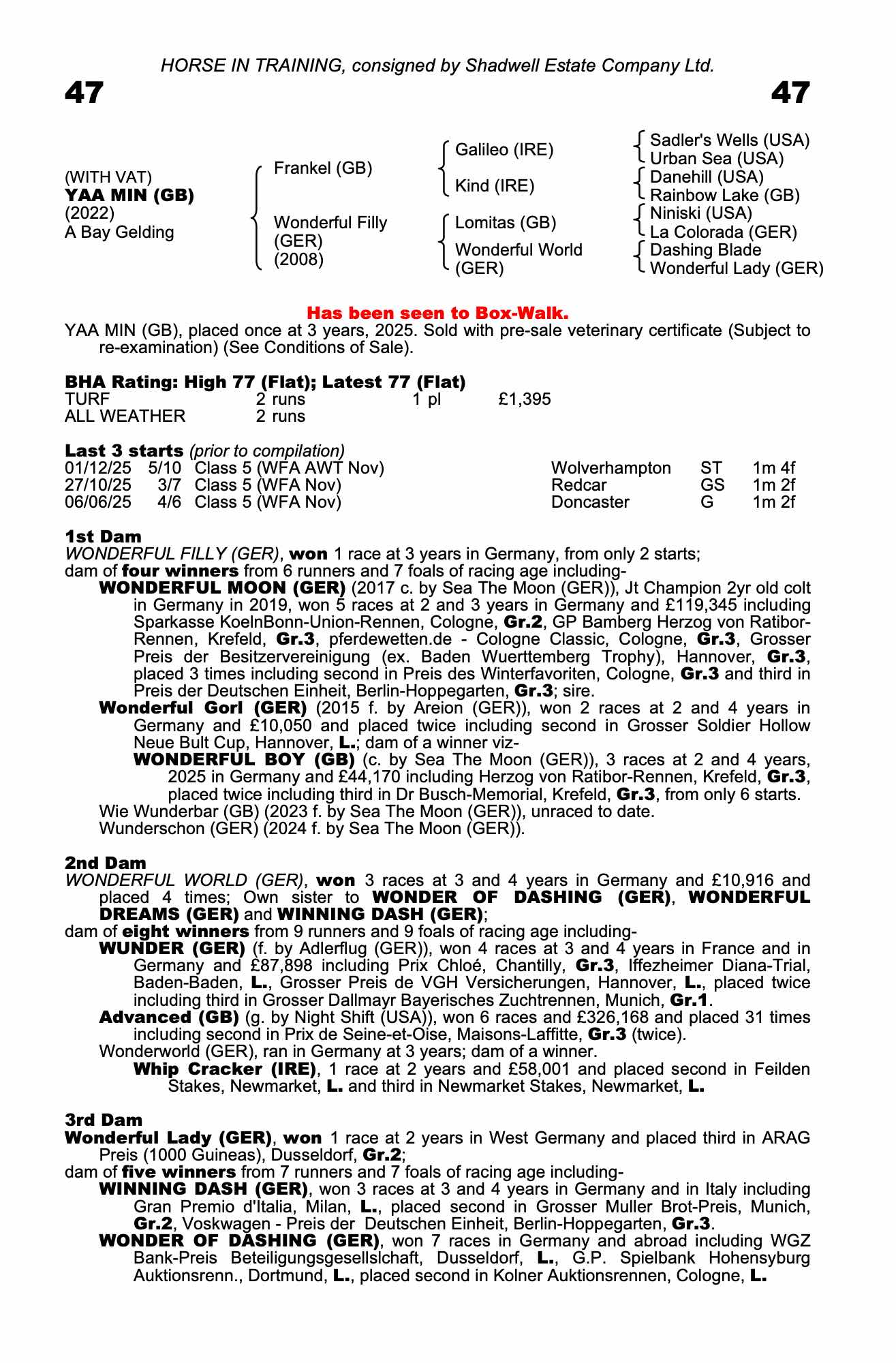 Contact: Charlotte Chittick ✆ +447595609997 ✉ cchittick@shadwellstud.co.uk