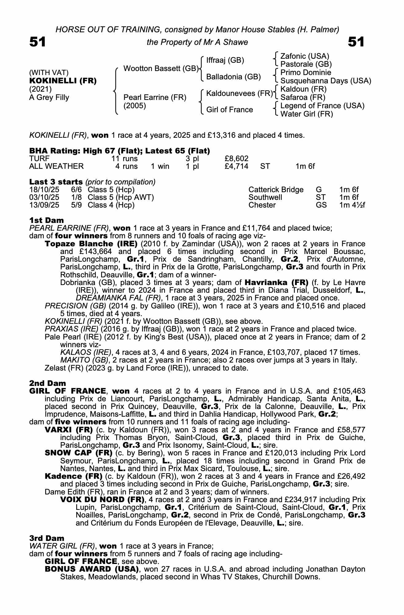 Vendor's Notes: Kokinelli (FR) 2021 F Wootton Bassett (GB) Pearl Earrine (FR)
