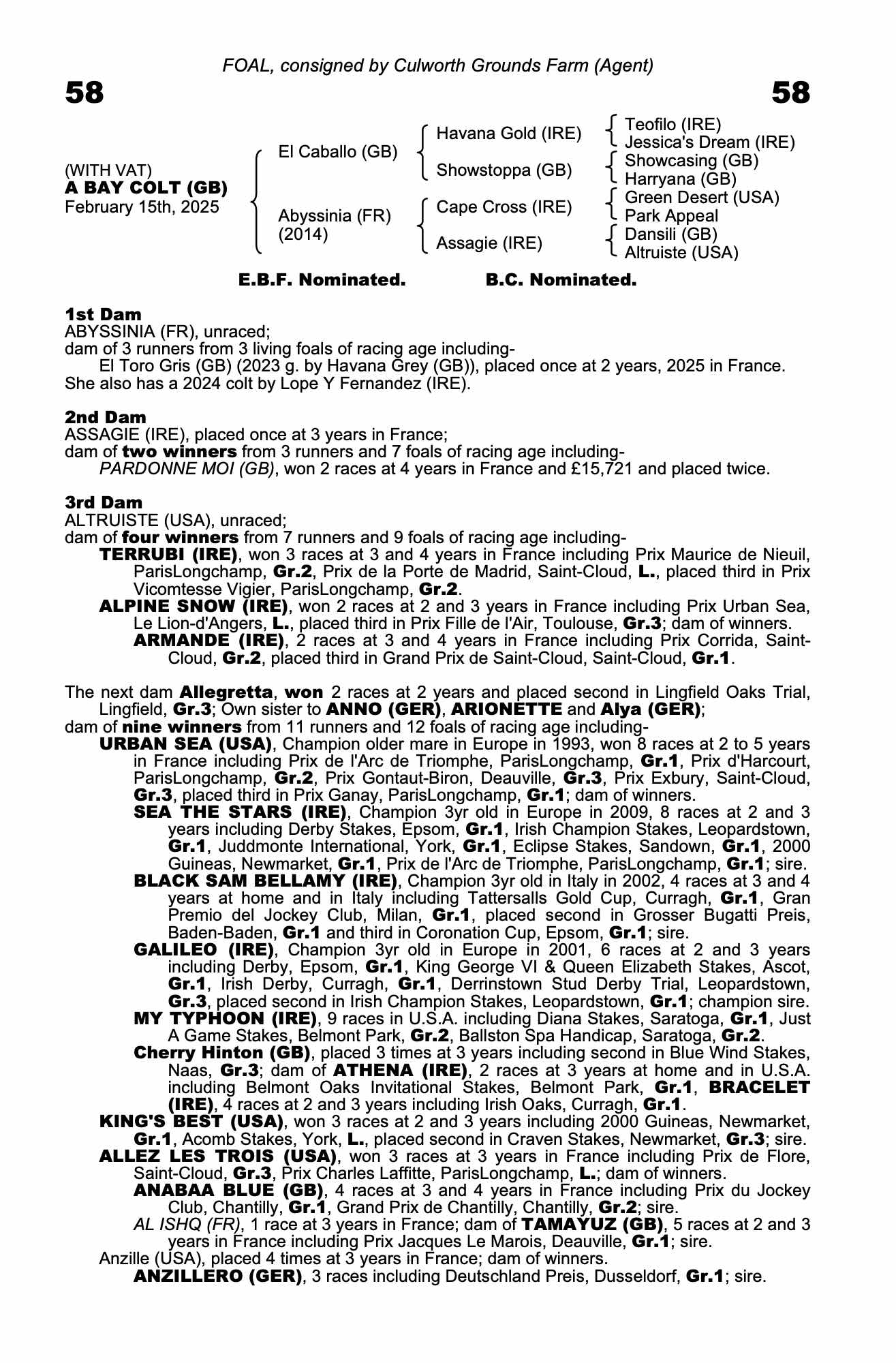 El Caballo (GB) / Abyssinia (FR) B.C. (GB)