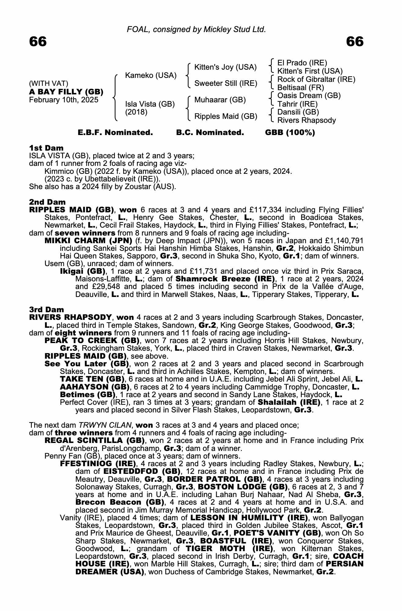Consignor: Mickley Stud Ltd.