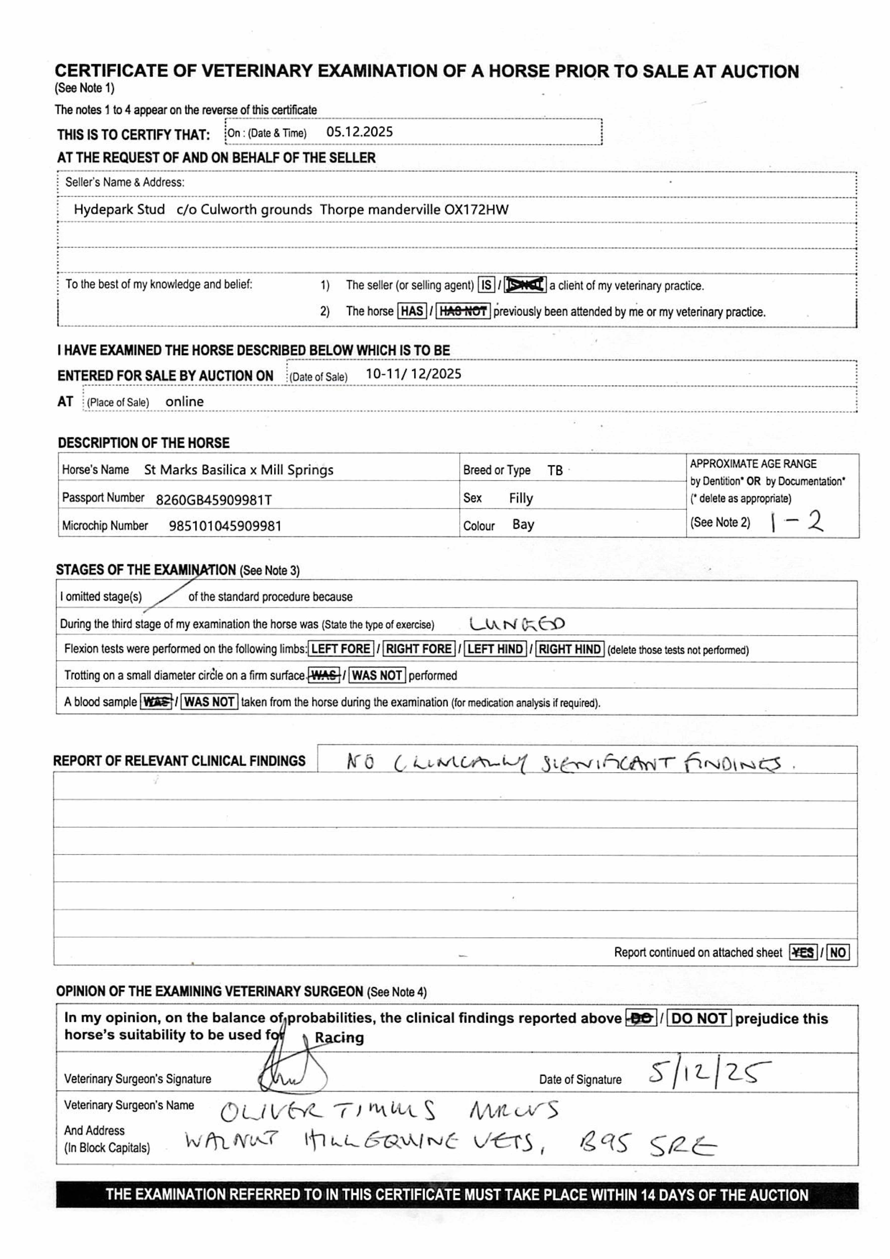 For time sensitive requests please call Tattersalls on +44(0)1638665931