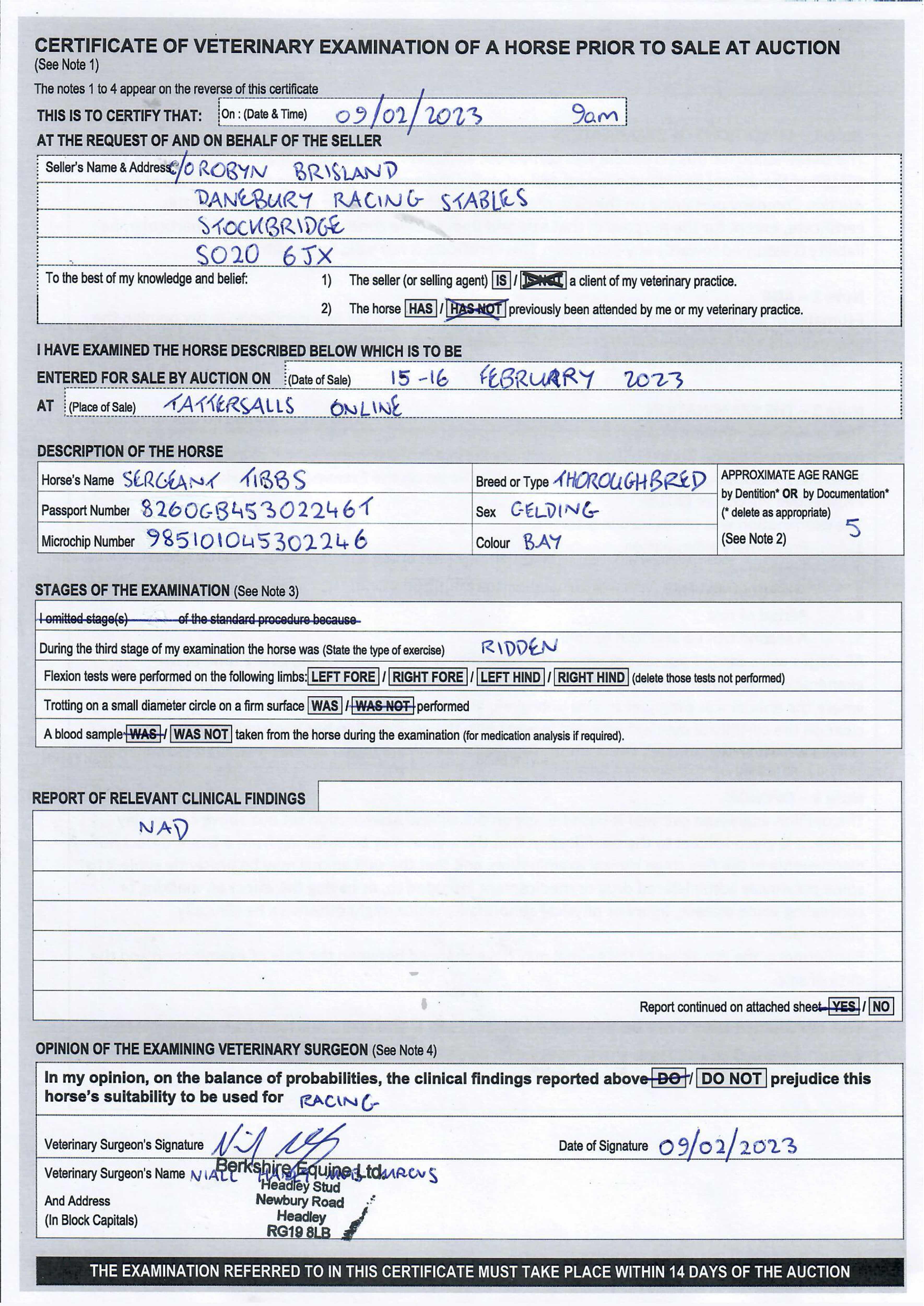 Monday 13 February:  Please note this Lot no longer requires a stalls test.