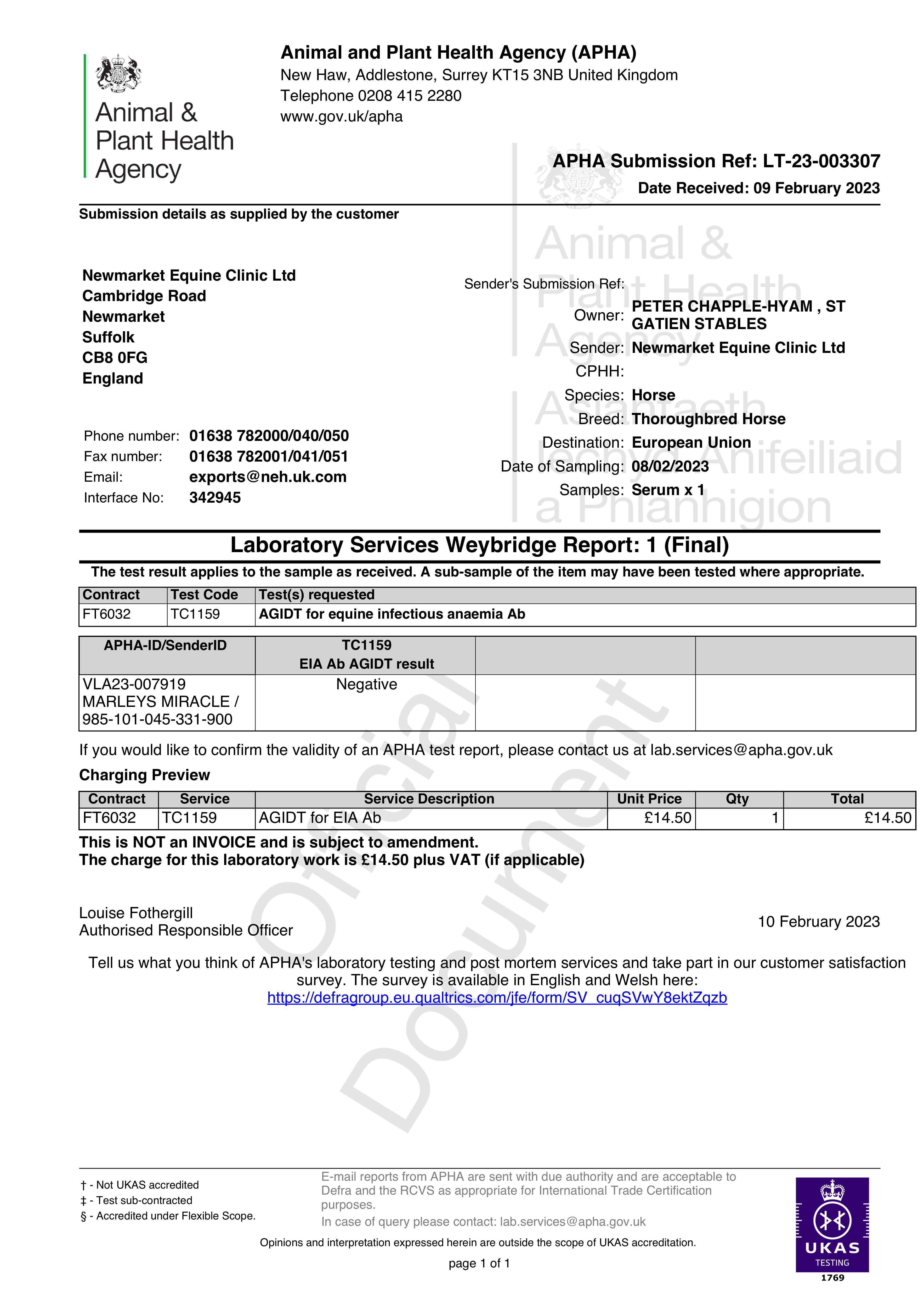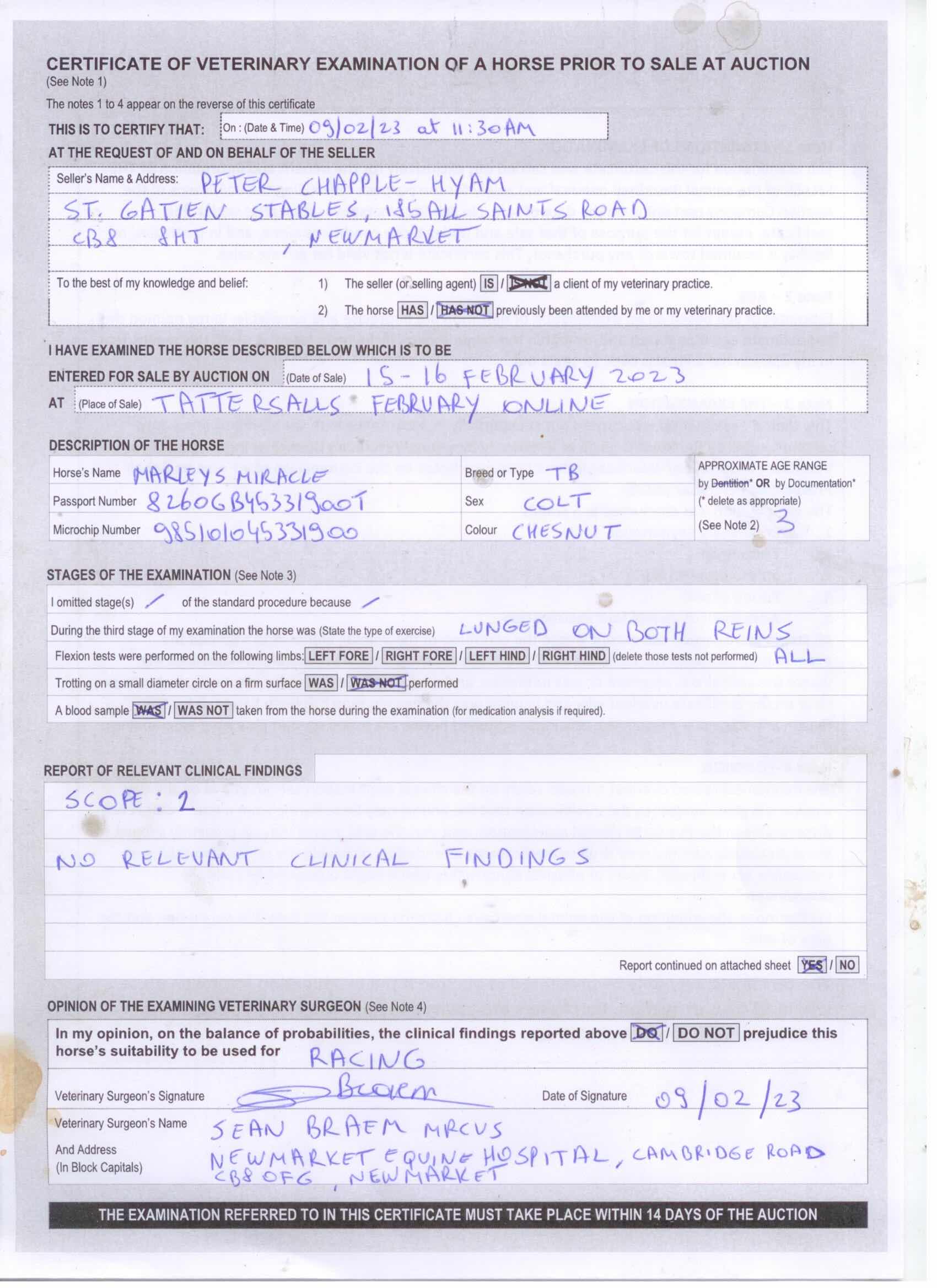 Marleys Miracle (GB) Ch.C.