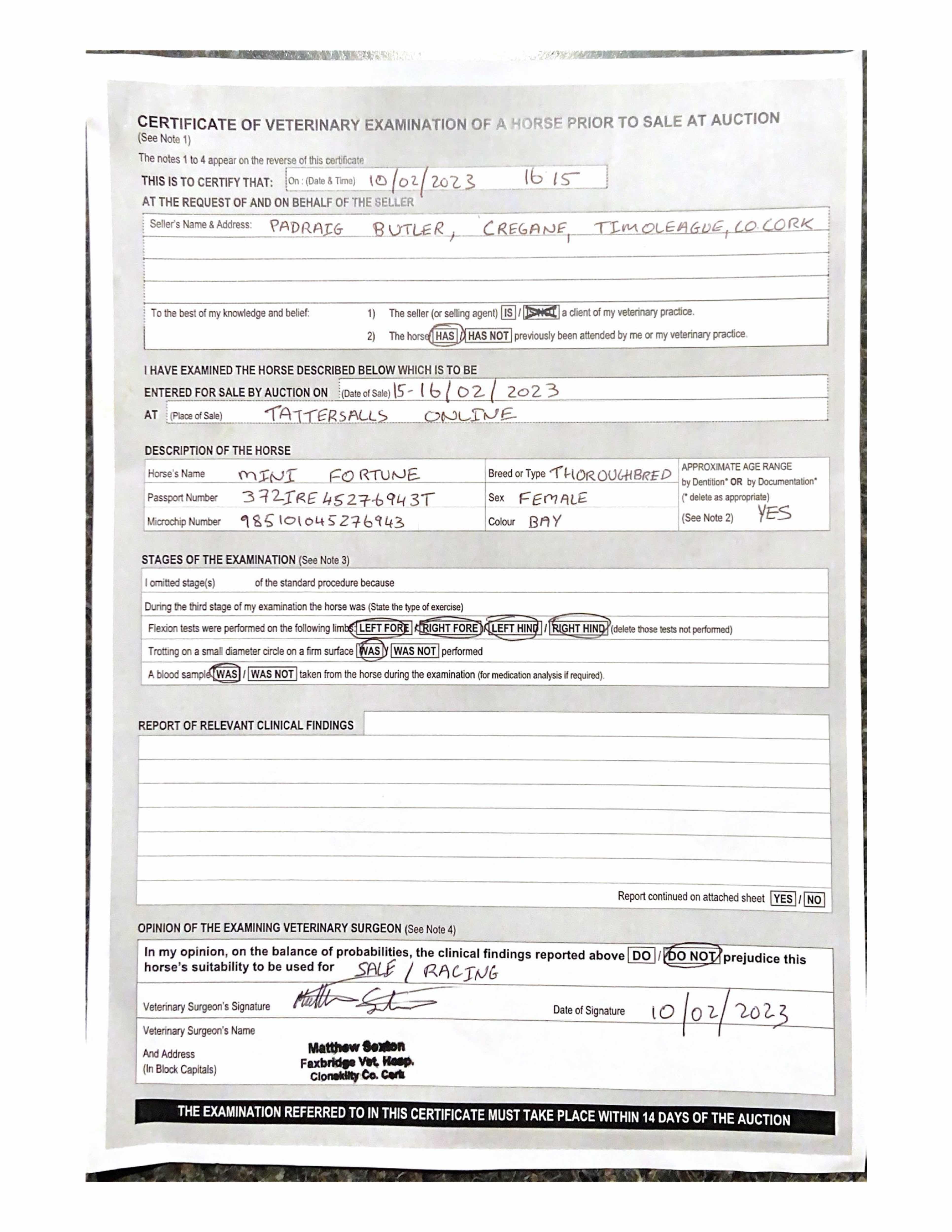 For time sensitive requests please call Tattersalls on +44(0)1638665931