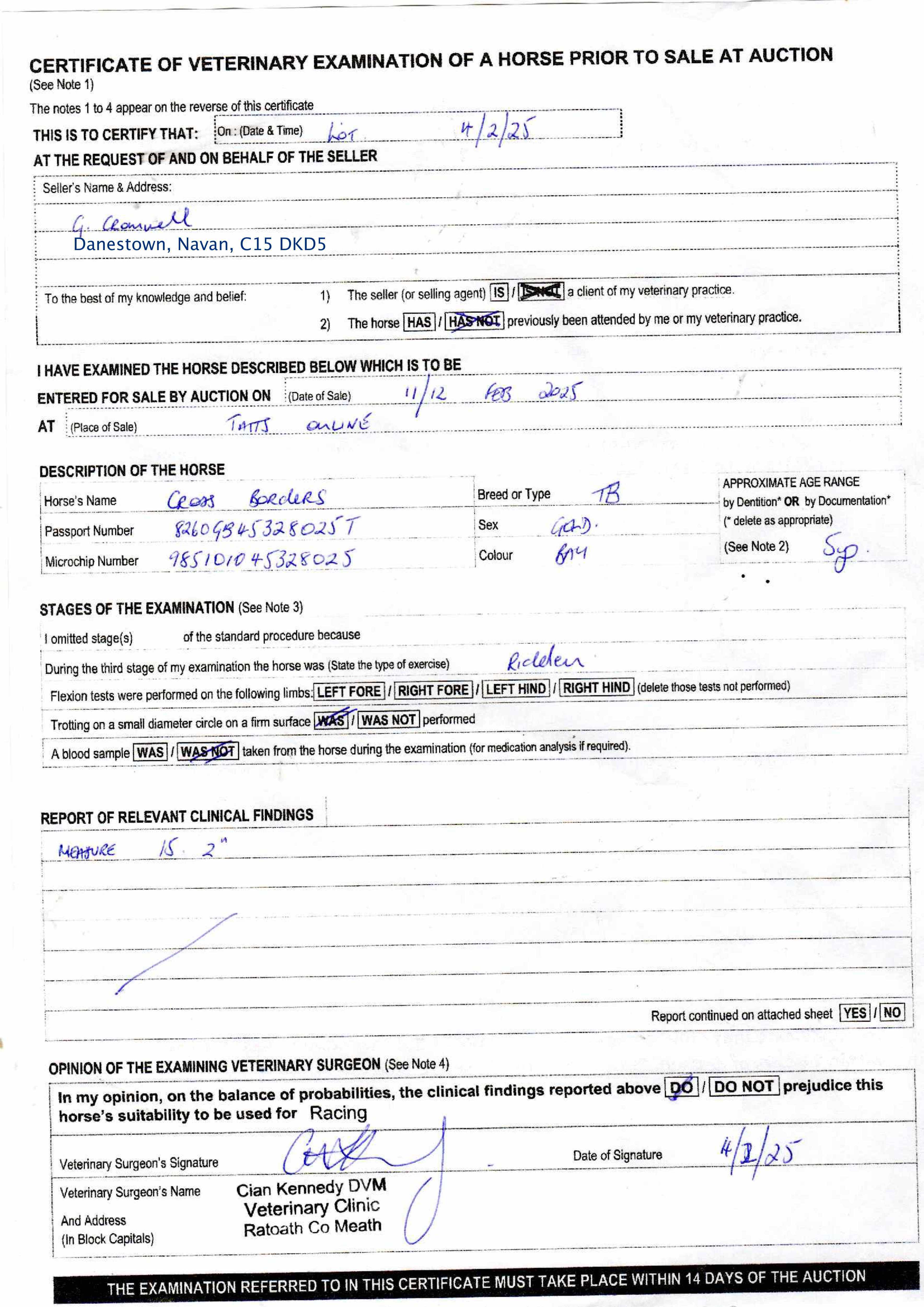 Vendor's Notes: Maiden winner in 2024 who was beaten a nose in a handicap in November. Looks up to winning off his current mark.