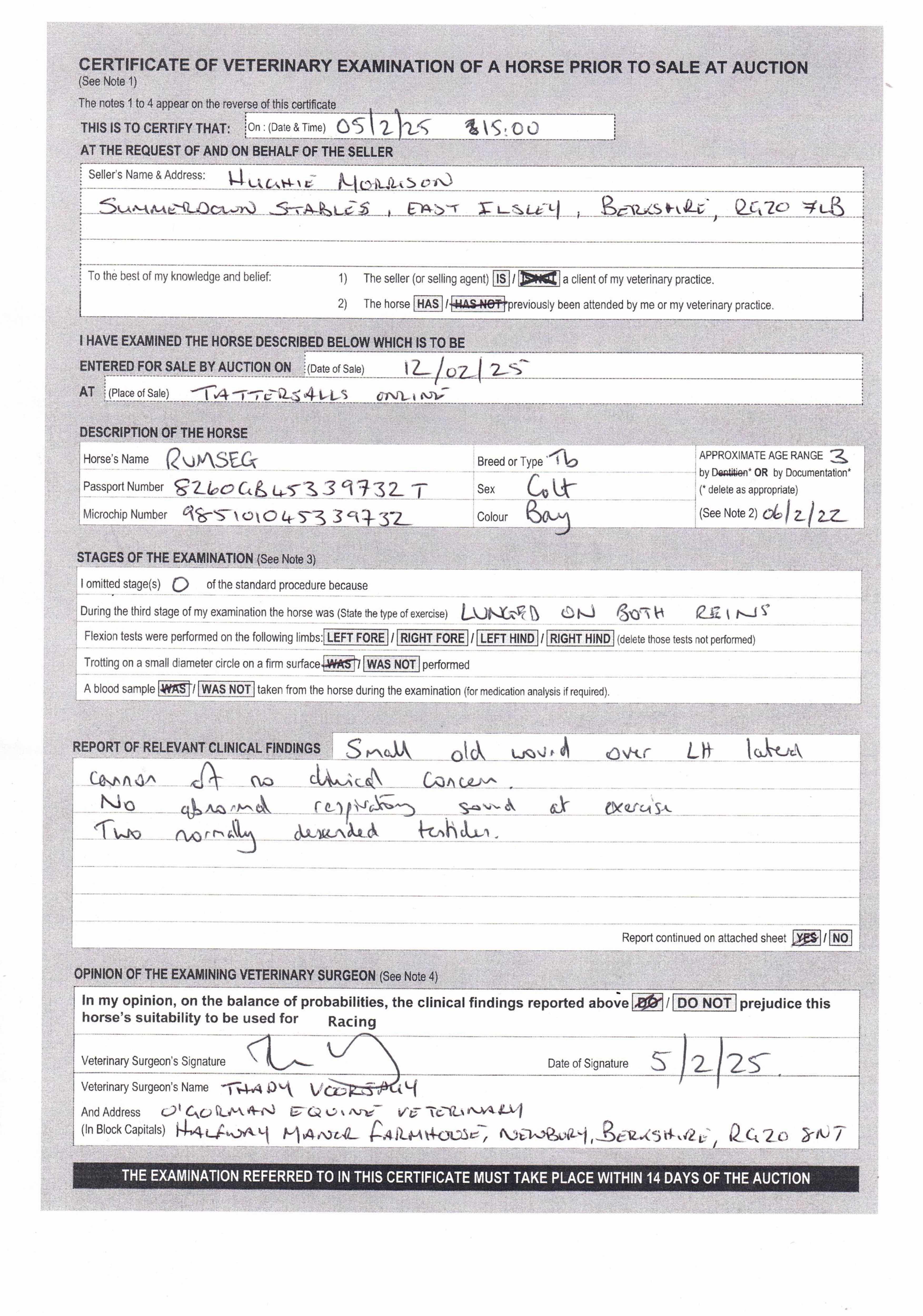For time sensitive requests please call Tattersalls on +44(0)1638665931