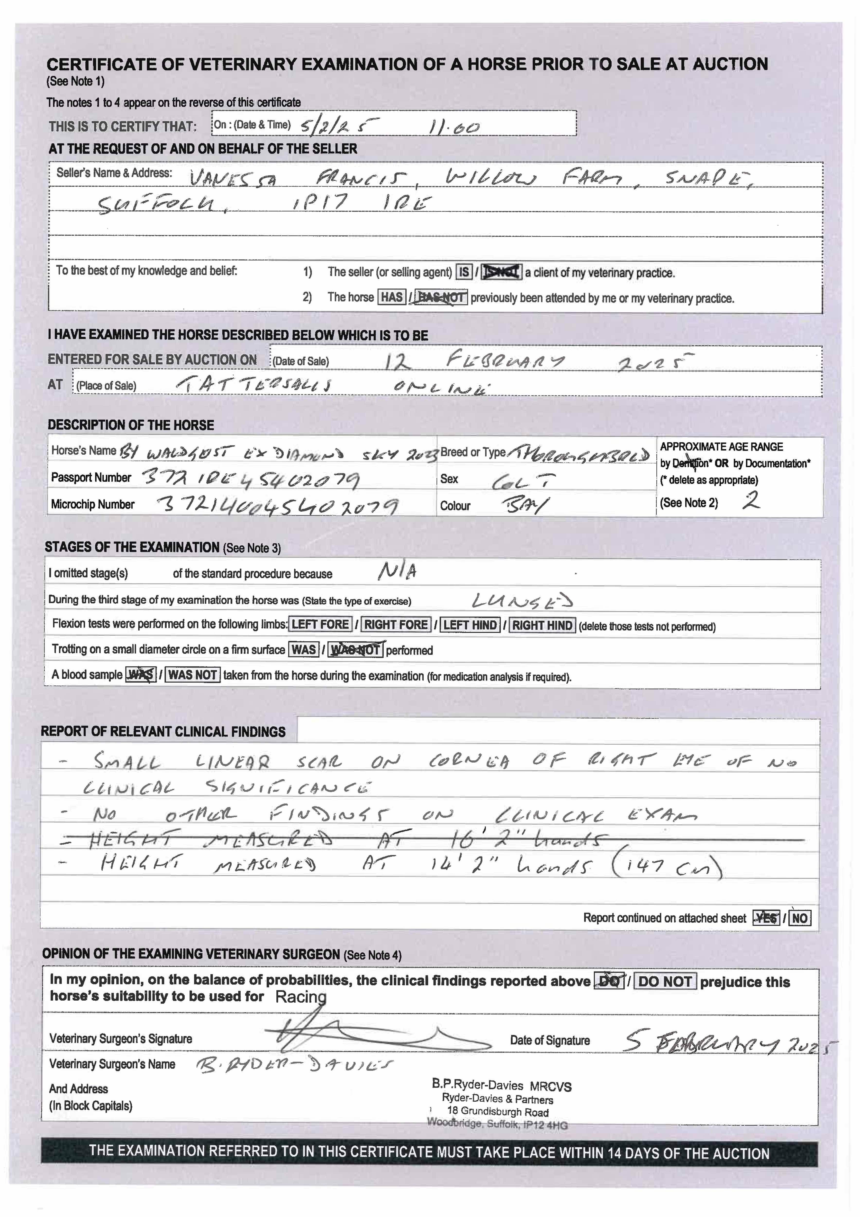 For time sensitive requests please call Tattersalls on +44(0)1638665931