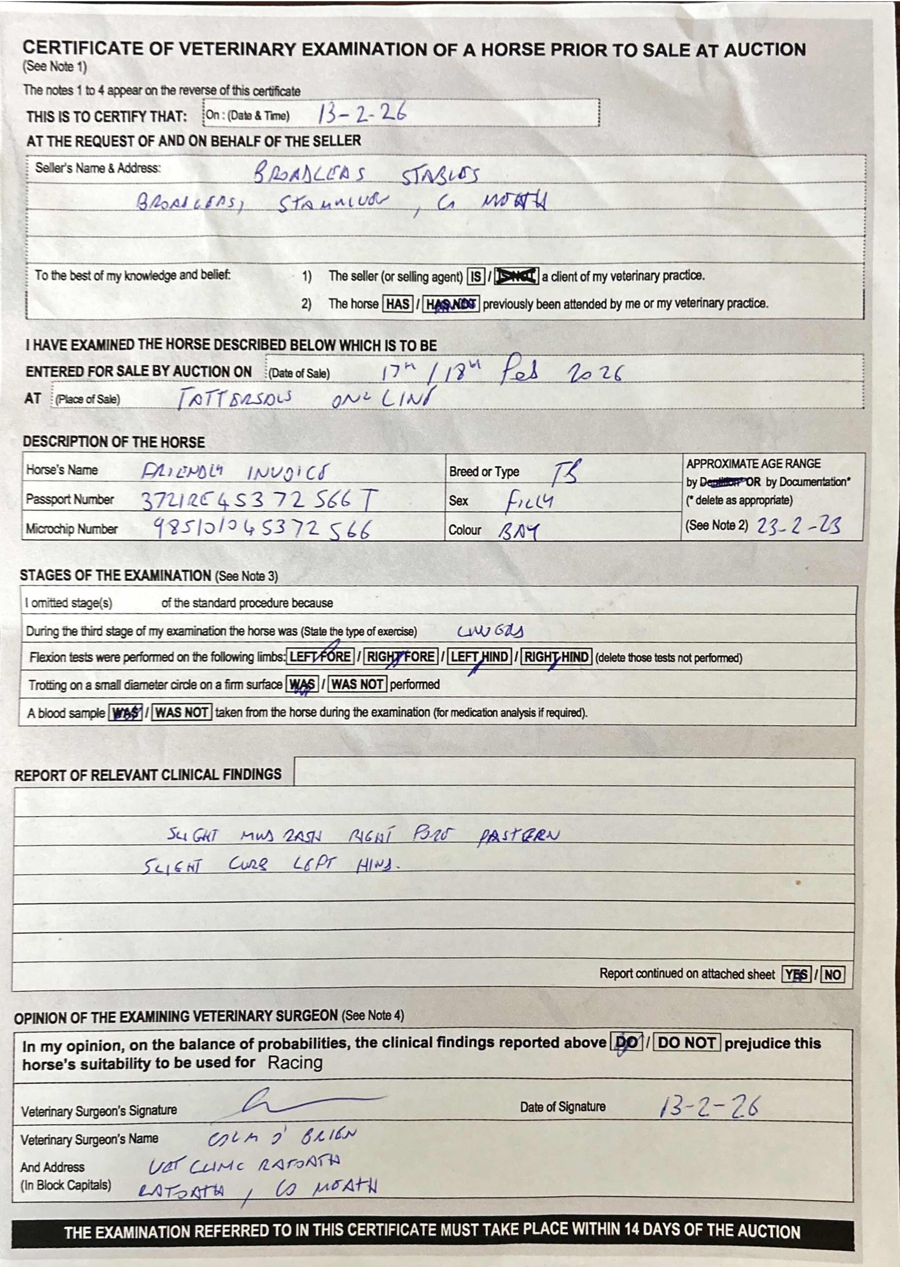 For time sensitive requests please call Tattersalls on +44(0)1638665931