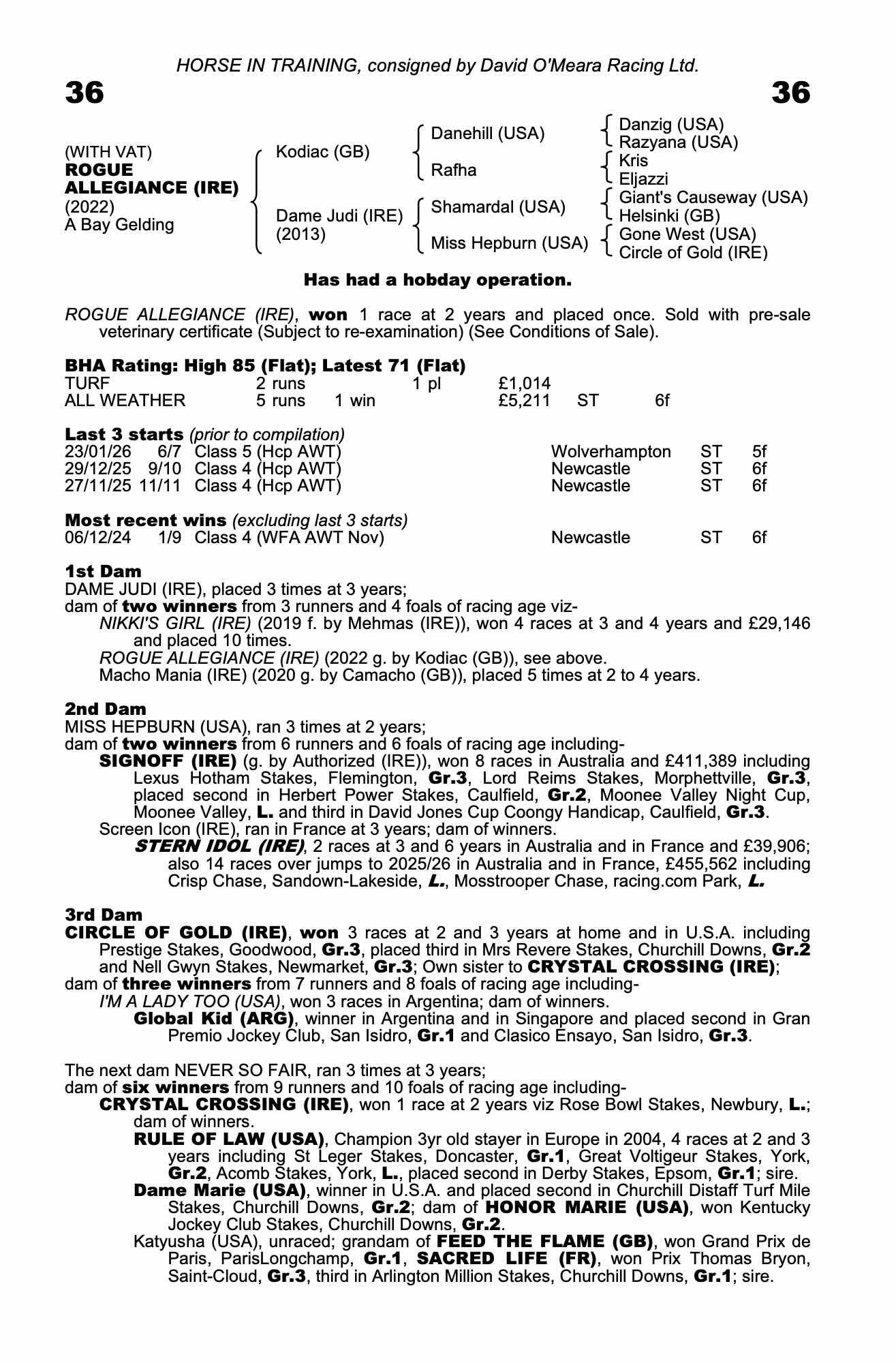 Consignor: David O'Meara Racing Ltd.