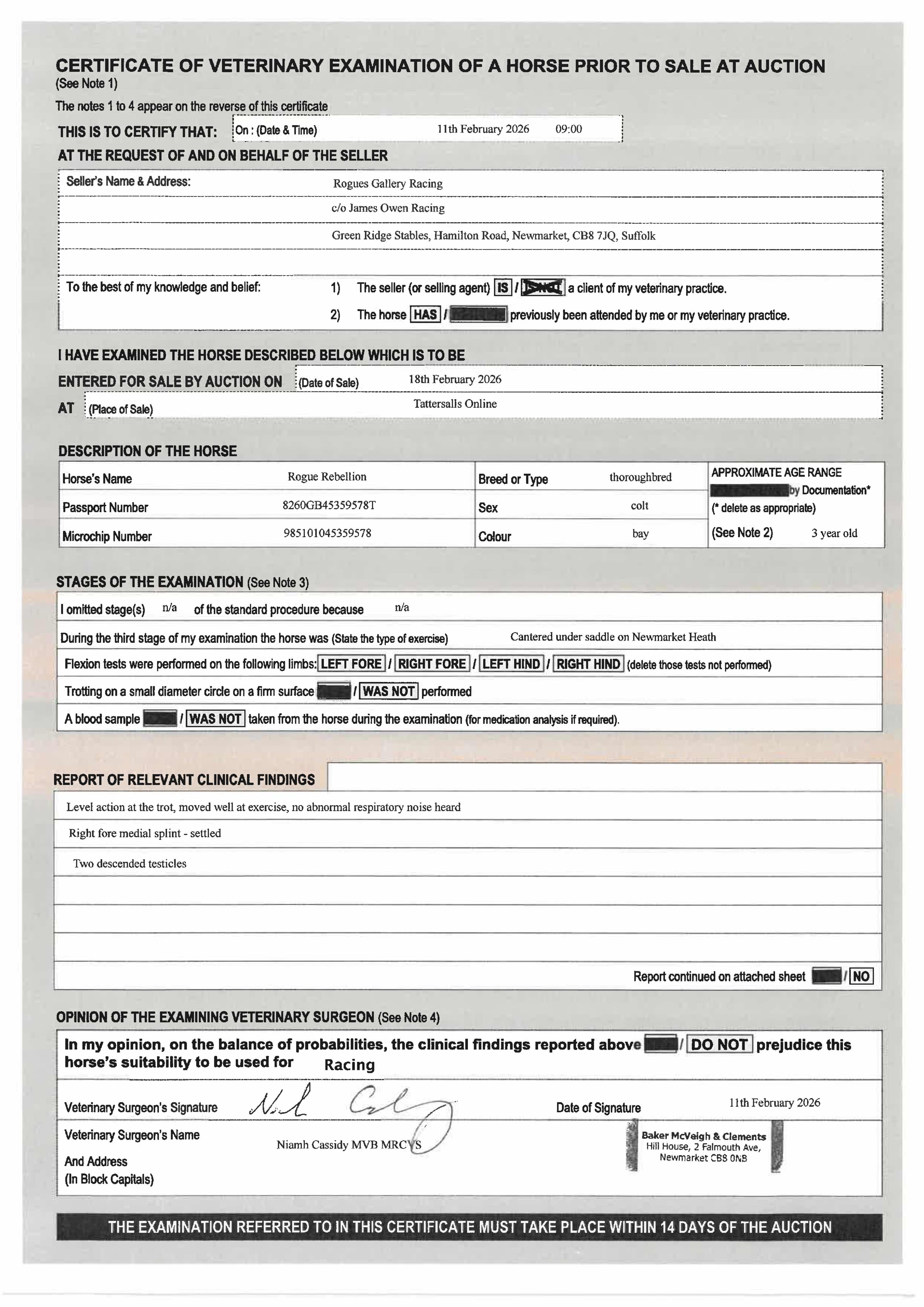 For time sensitive requests please call Tattersalls on +44(0)1638665931