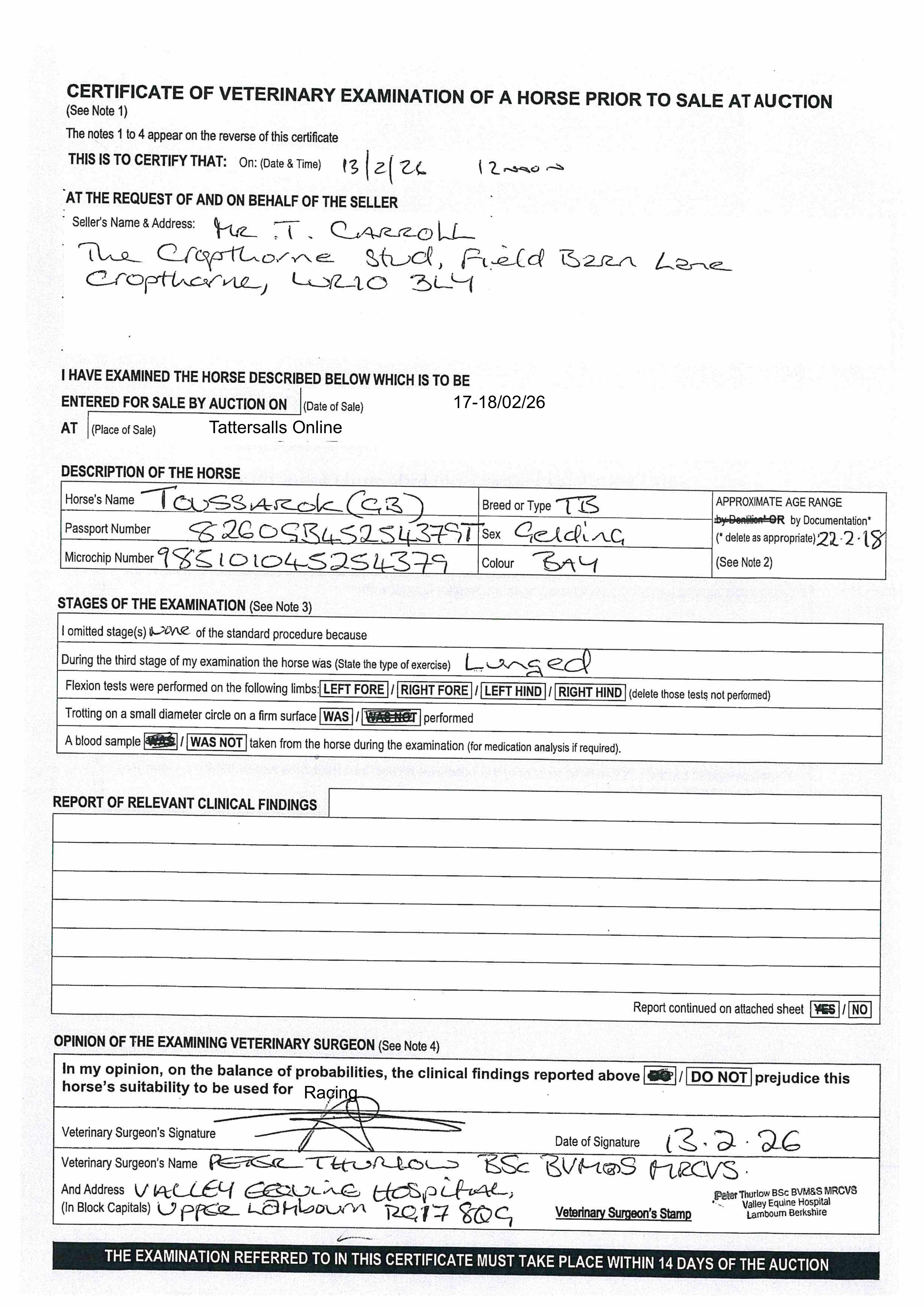 For time sensitive requests please call Tattersalls on +44(0)1638665931