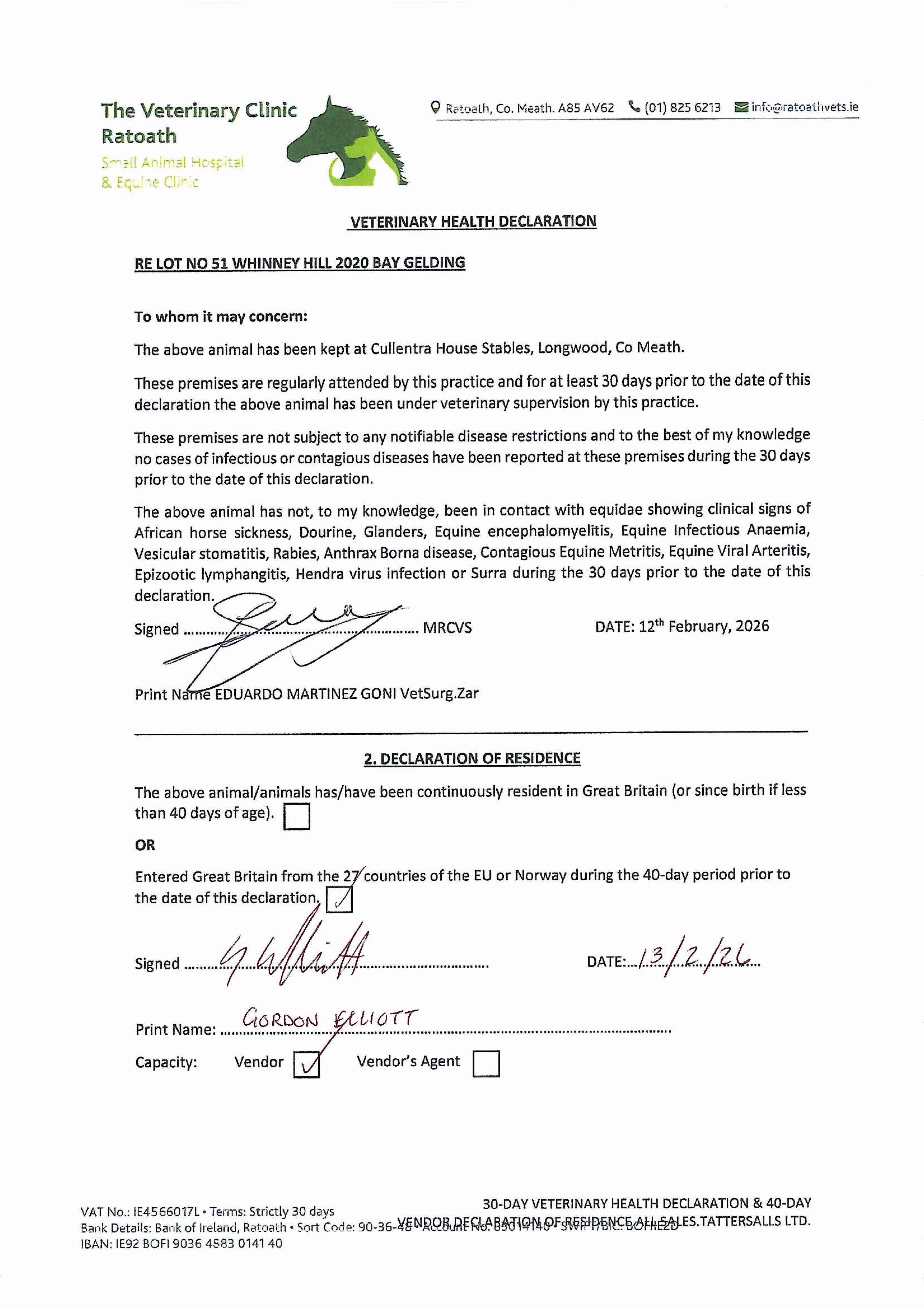 Contact: Gordon Elliott  ✆ +353469555051  ✉ office@gordonelliottracing.com